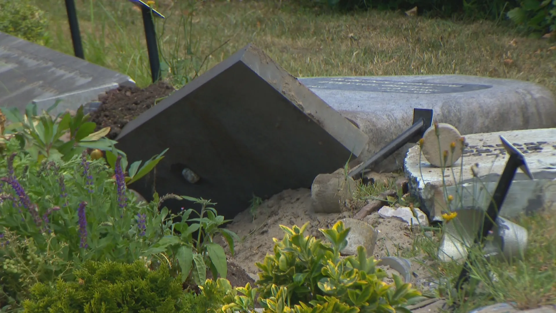 Acht graven zijn er erg aan toe. Een van de beschadigde graven is een kindergraf. "Dat is extra zwaar", aldus Larson. "Ik heb hier geen woorden voor, dit is heel naar om te zien." Het deel waar de grootste ravage is aangericht is afgesloten met een groot hek. "We willen de nabestaanden eerst de gelegenheid geven om zelf te kijken hoe de graven erbij liggen", legt de burgemeester uit. Het dichte hek bij begraafplaats Berestein. Op een papiertje staat 'afgesloten met beschadigde monumenten'. (Tekst gaat verder onder de foto)
