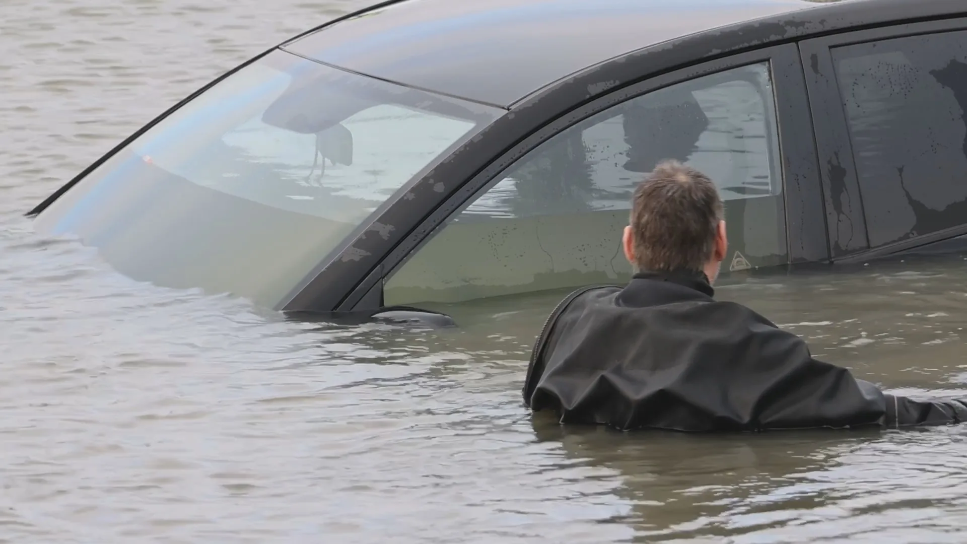 Hij was namelijk een stukje wandelen en zag bij terugkomst de consternatie in de haven. Even later besefte hij dat de hulpdiensten bezig waren om zijn auto uit het water te halen.