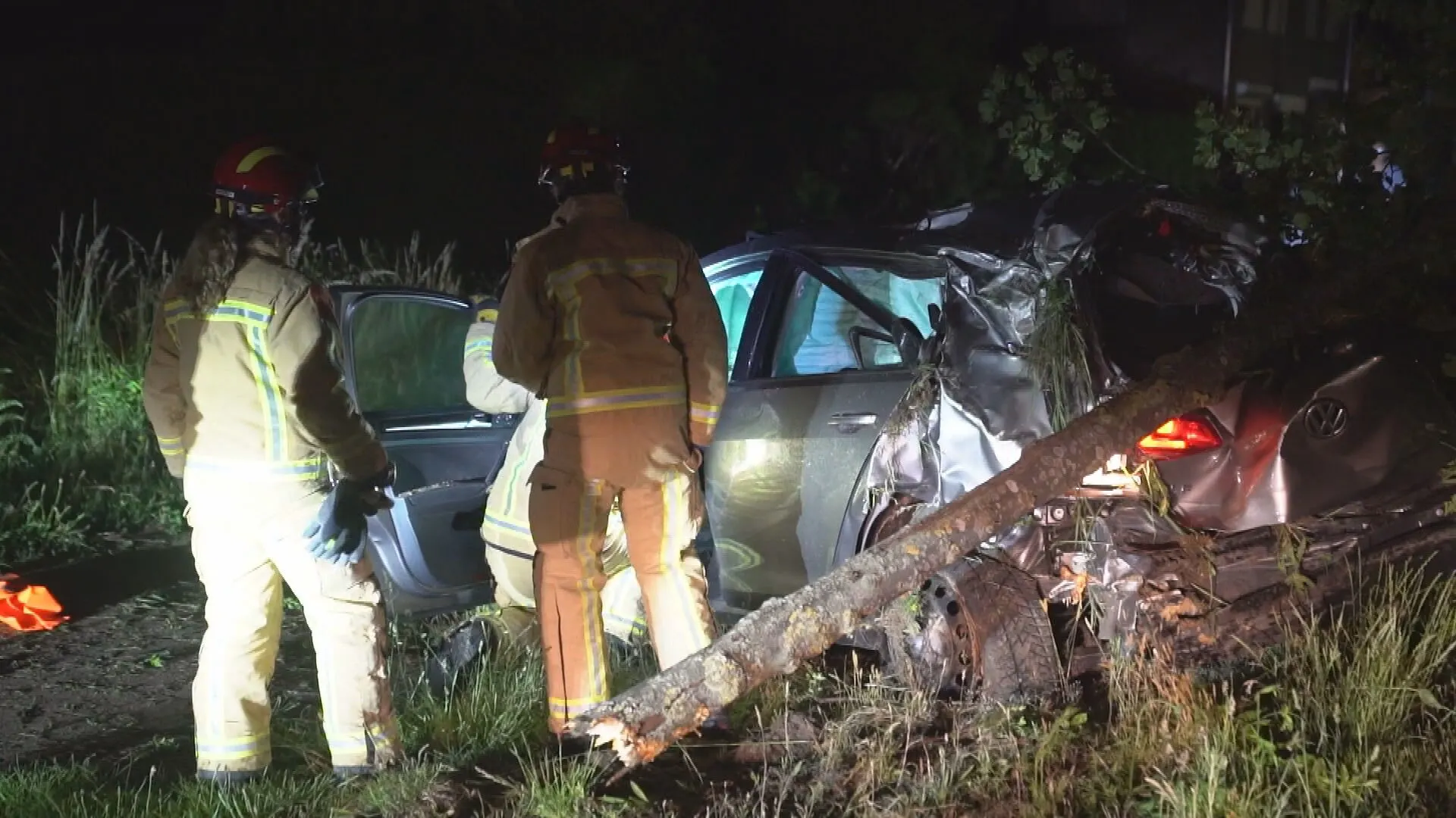 Hulpdiensten kregen om 0.48 uur melding binnen van het ongeluk. Brandweer en ambulance waren snel ter plaatse. De bestuurder kon op eigen kracht via het dakraam uit de auto klimmen, maar zakte daarna in de greppel alsnog in elkaar.