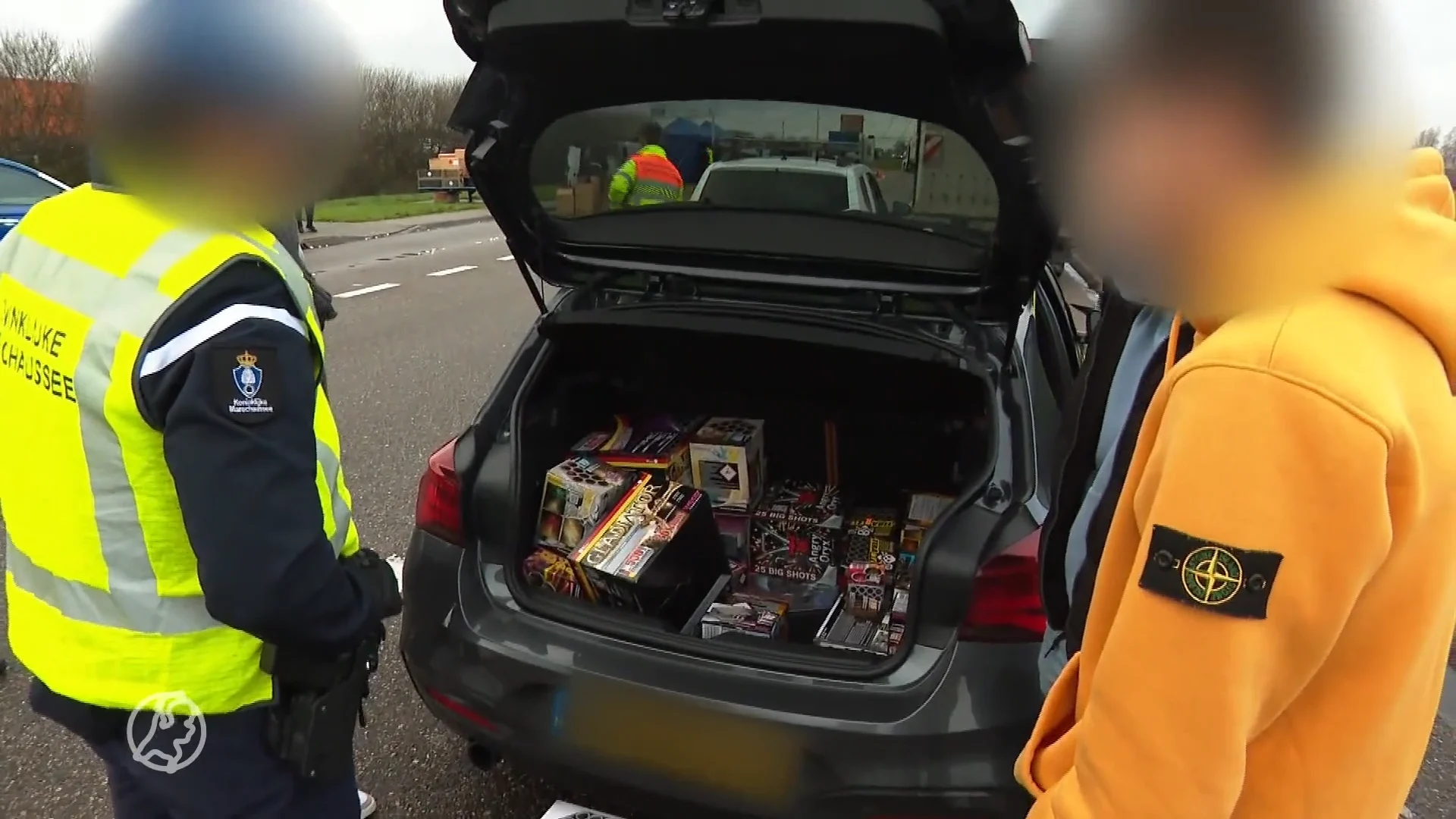 Bij een auto die staande is gehouden door de politie heeft de agent slecht nieuws voor de inzittenden. De kofferbak is volgeladen met meerdere stuks vuurwerk: "Alles wordt in beslag genomen." De jongeman die naast het voertuig kan het niet geloven: "Alles?" vraagt hij aan de diender, die vervolgens bevestigend knikt.