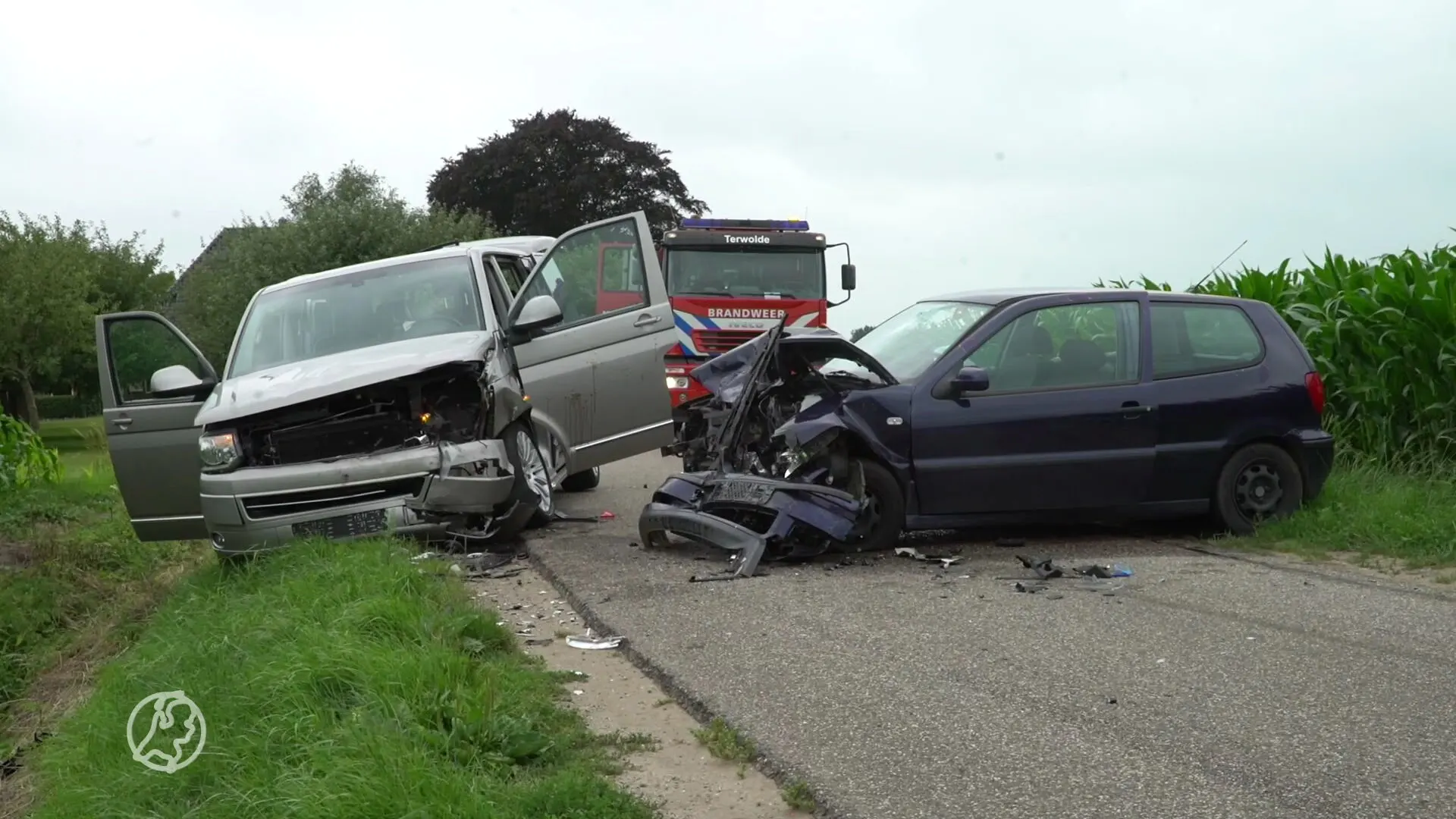 In het busje zat een gezin, waarvan de man de bestuurder was en zijn vrouw op de bijrijdersstoel zat. Achterin zaten vijf kinderen, die met de schrik vrijkwamen. Ook de man raakte niet gewond. De kinderen zijn opgevangen in de brandweerauto en daarna door familie opgehaald. In de personenauto zat een man. Hij raakte lichtgewond en is ter controle naar het ziekenhuis gebracht. Beeld: SPS Media