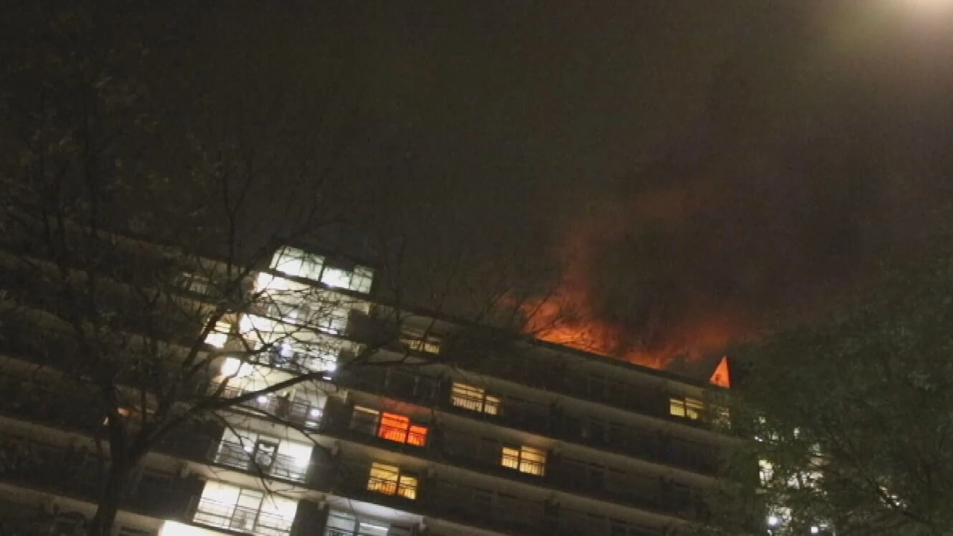 De brand ontstond afgelopen nacht even na 2.30 uur bovenin de flat aan het Reviusrondeel. Het vuur sloeg over naar het dak, waar ventilatoren stonden. Daardoor werd veel rook via de ventilatiekanalen verschillende woningen ingeblazen. 25 appartementen moesten worden ontruimd, tientallen bewoners kunnen voorlopig nog niet terug naar huis.