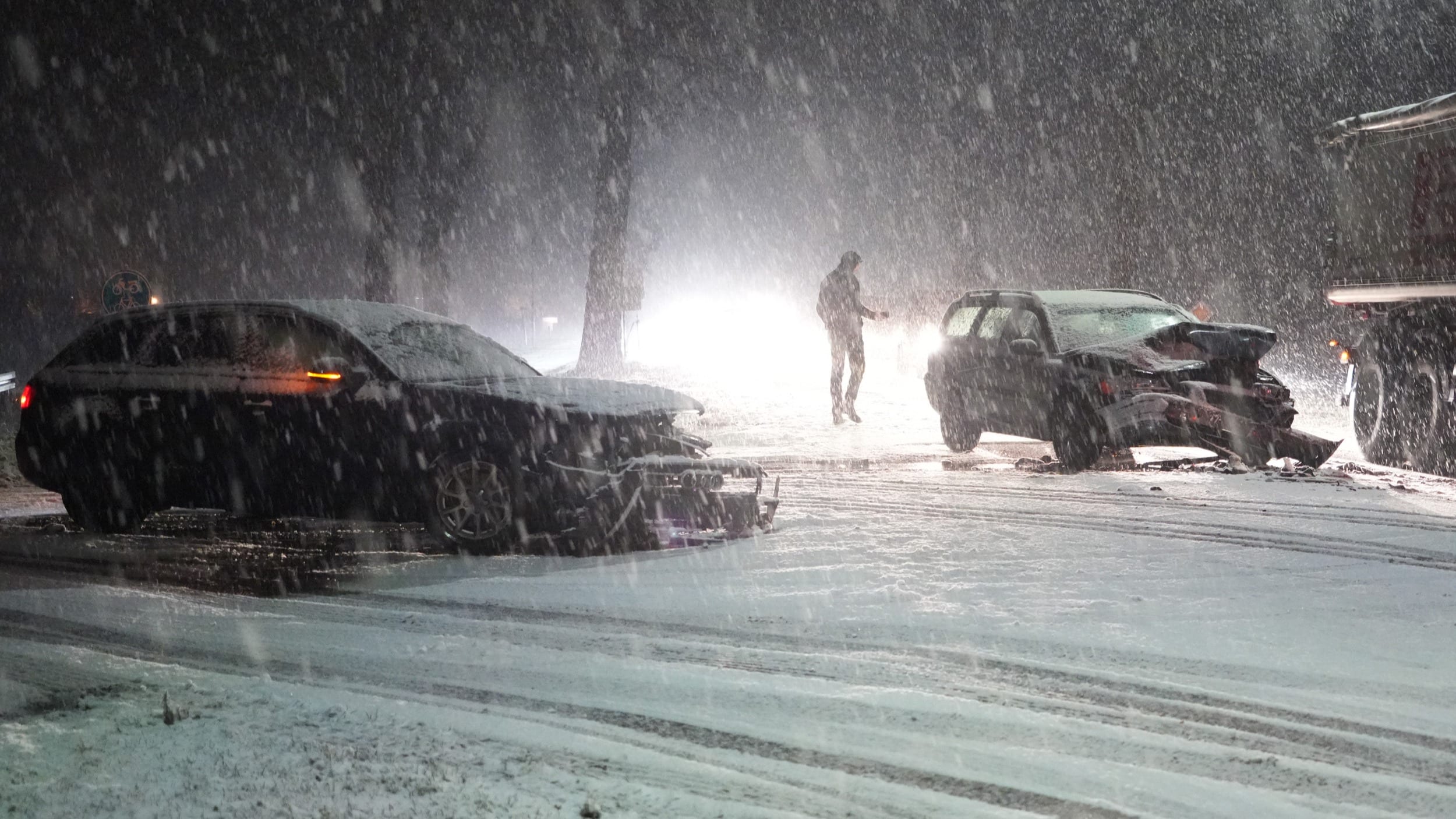 Een hevige sneeuwbui heeft donderdagochtend voor een gevaarlijke situatie gezorgd op de Nieuw-Amsterdamseweg met de Oldenhuis Gratamaweg in Schoonebeek. Twee auto's kwamen door de gladheid in een glijpartij terecht op het kruispunt, wat resulteerde in aanzienlijke schade.