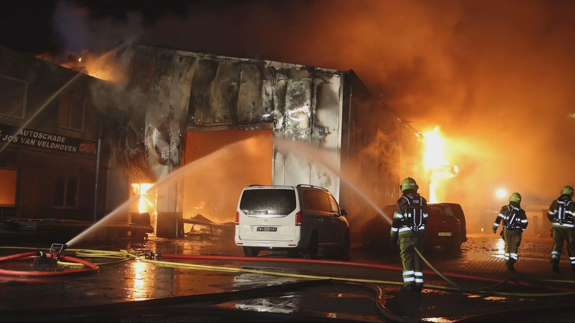 De brand ontstond rond 21.40 uur bij autoschadebedrijf Jos van Veldhoven. Ook omliggende bedrijven, die gehuisvest zijn in hetzelfde gebouw als het autoschadebedrijf, raakten beschadigd.