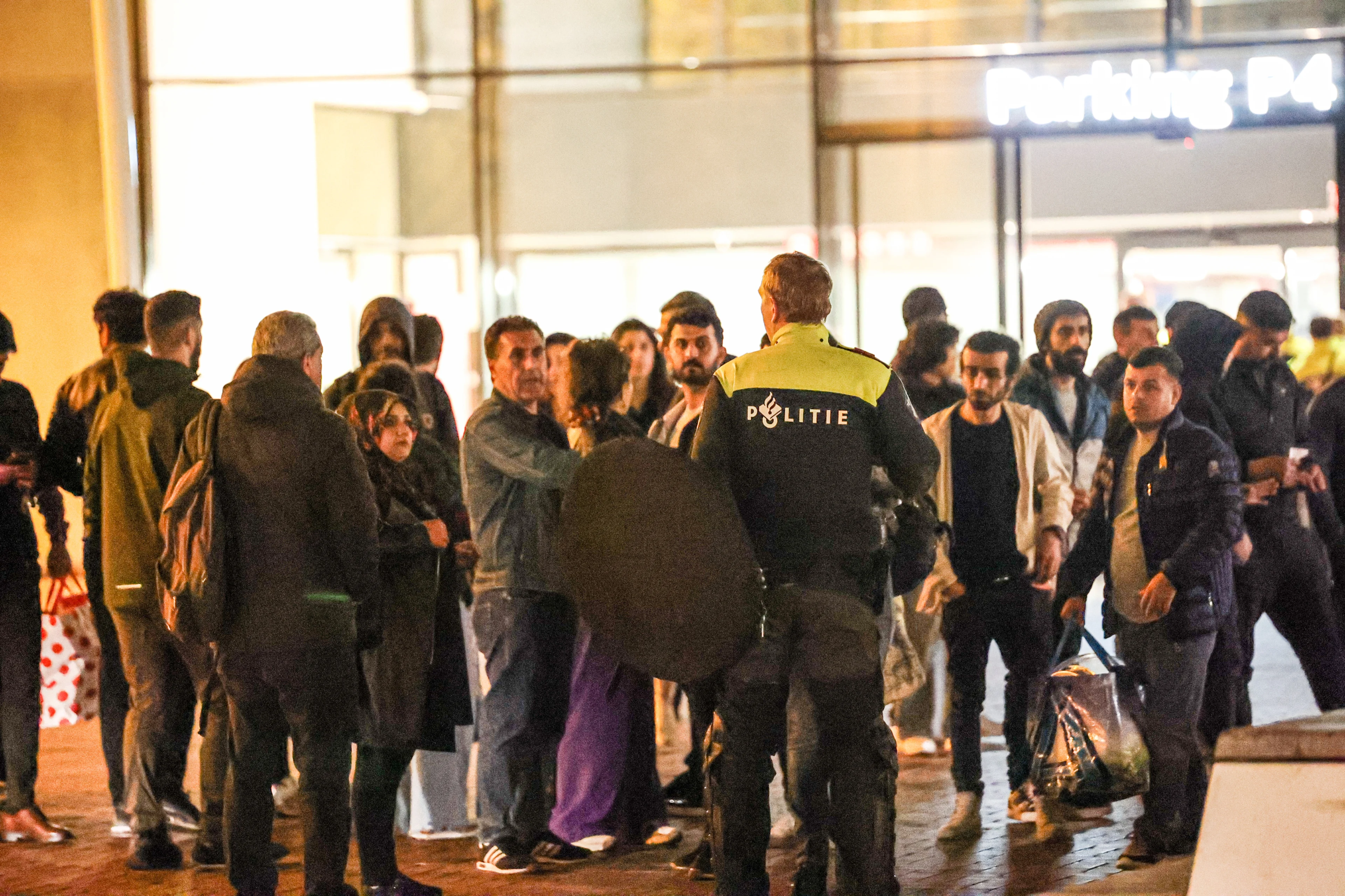 Een deel van de aanwezigen ging naar buiten en bleef rond het gebouw hangen. "Een aantal van hen wilde terug naar binnen om spullen op te halen", zegt de woordvoerder. Maar de politie stond dat niet toe, om nieuwe confrontaties te voorkomen met mensen die nog aanwezig waren in de RAI. "Uiteindelijk hebben we ze gefaseerd binnengelaten. Daarna keerde de rust terug", aldus de politie.