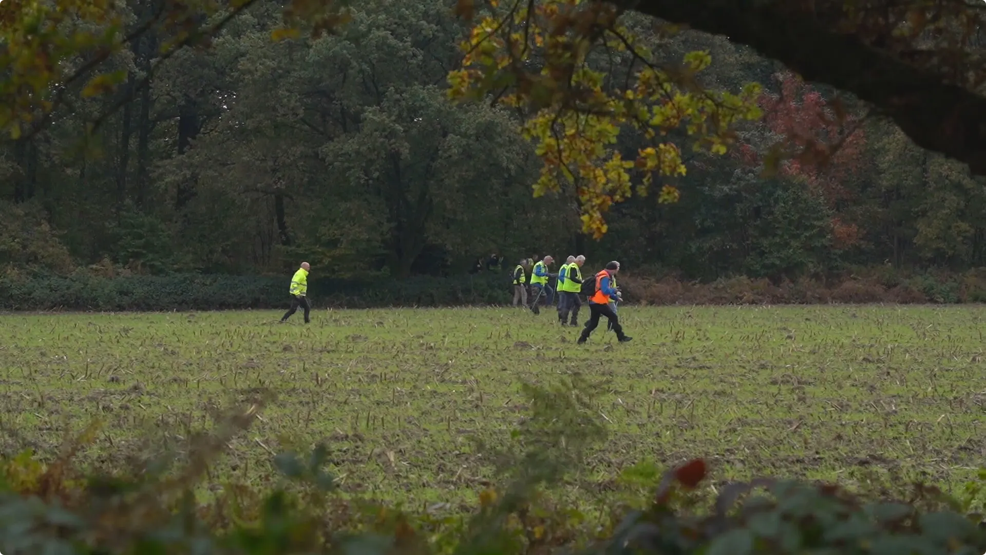 In de uiterwaarden van de Neder-Rijn tussen Heveadorp en Oosterbeek is gezocht met honden en paarden.