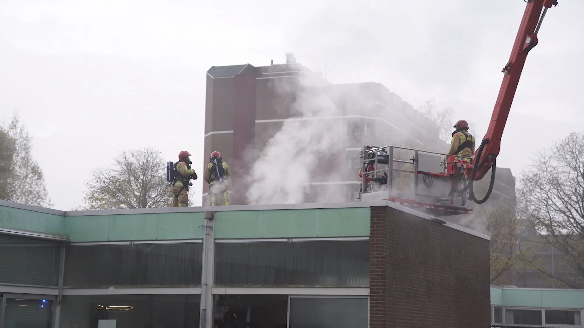 De brandweer probeerde te voorkomen dat de brand zou overslaan naar de rest van het gebouw. Dat is gelukt; na enige tijd had de brandweer het vuur onder controle.