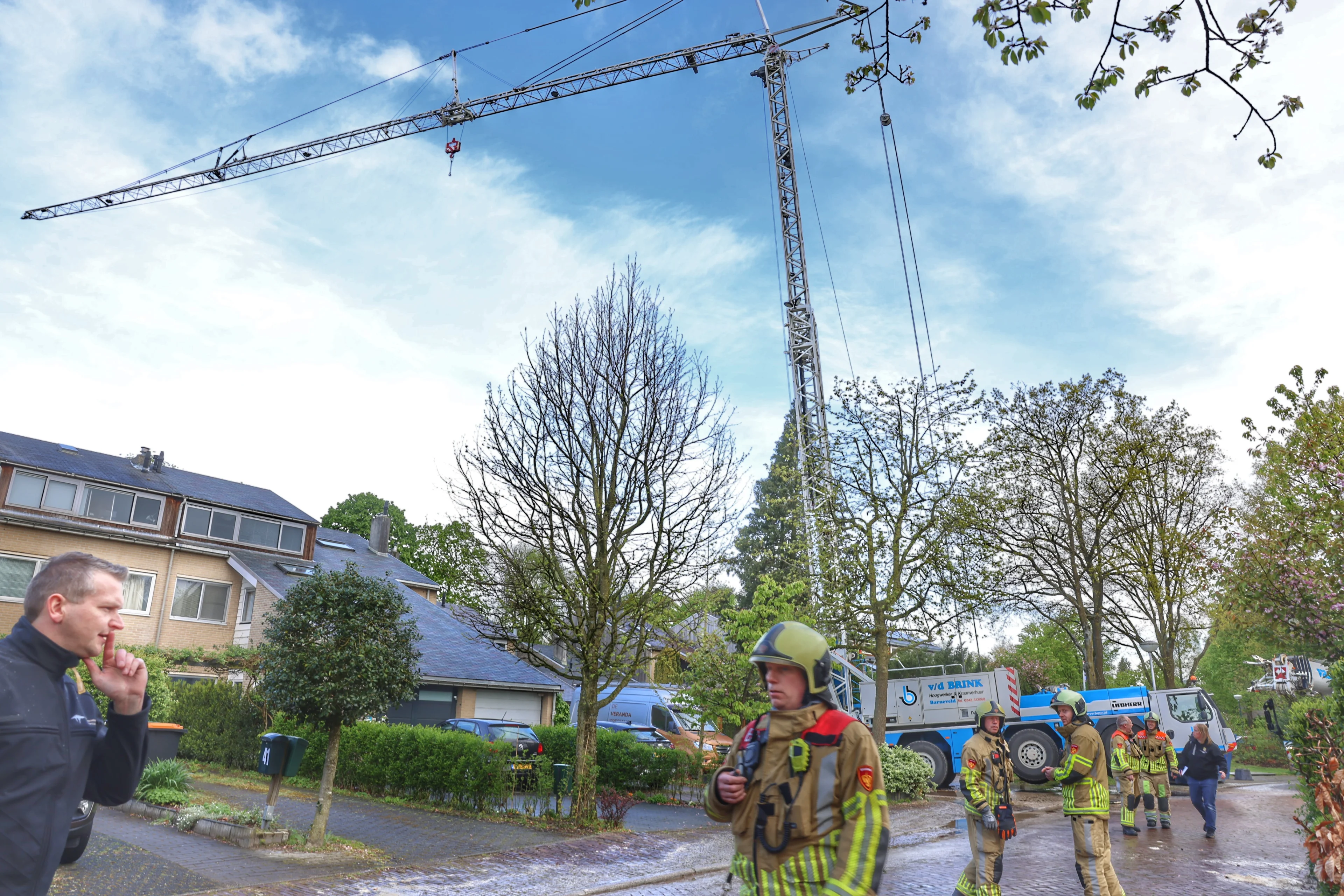 Woensdagochtend dreigde een bouwkraan van 25 meter hoog om te vallen nadat een van de vier stempelpoten in de grond zakte. De kraan staat in de straat Waarden. Uit voorzorg werden er twintig woningen ontruimd. De straat is ruim afgezet.
