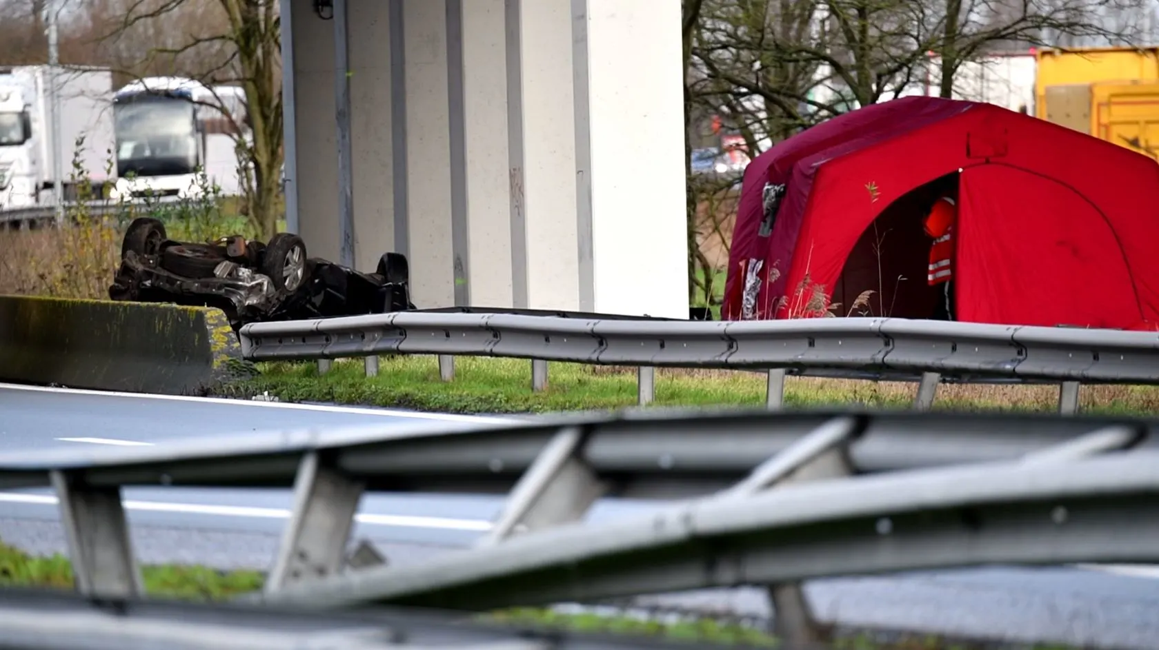 De auto werd pas vrijdagochtend rond 9.00 uur ontdekt toen het licht werd. De vrachtwagenchauffeur die het wrak zag, heeft meteen de hulpdiensten gebeld. De bestuurder zat volgens de Belgische politie nog op zijn plaats toen agenten arriveerden, de bijrijder was door de klap weggeslingerd. De hulp kwam voor beide Nederlanders te laat. Het is nog onduidelijk hoe het ongeluk heeft kunnen gebeuren. Het OM in Antwerpen onderzoekt de oorzaak. Beelden: Marc de Roeck