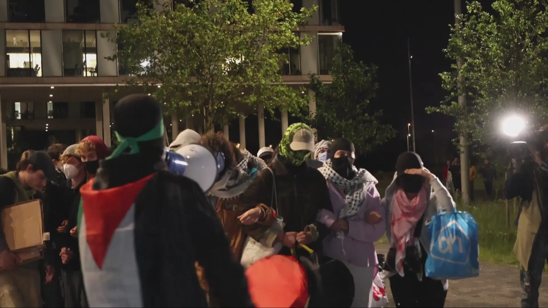 De demonstranten begonnen hun actie op het Science Park maandagmiddag. Ze willen dat de UvA de banden met Israëlische universiteiten verbreekt. Het protest verliep eerst vreedzaam, maar rond 17.30 uur sloeg de sfeer volgens de universiteit om. Gemaskerde actievoerders wierpen barricades op, vernielden beveiligingscamera's en blokkeerden doorgangen.