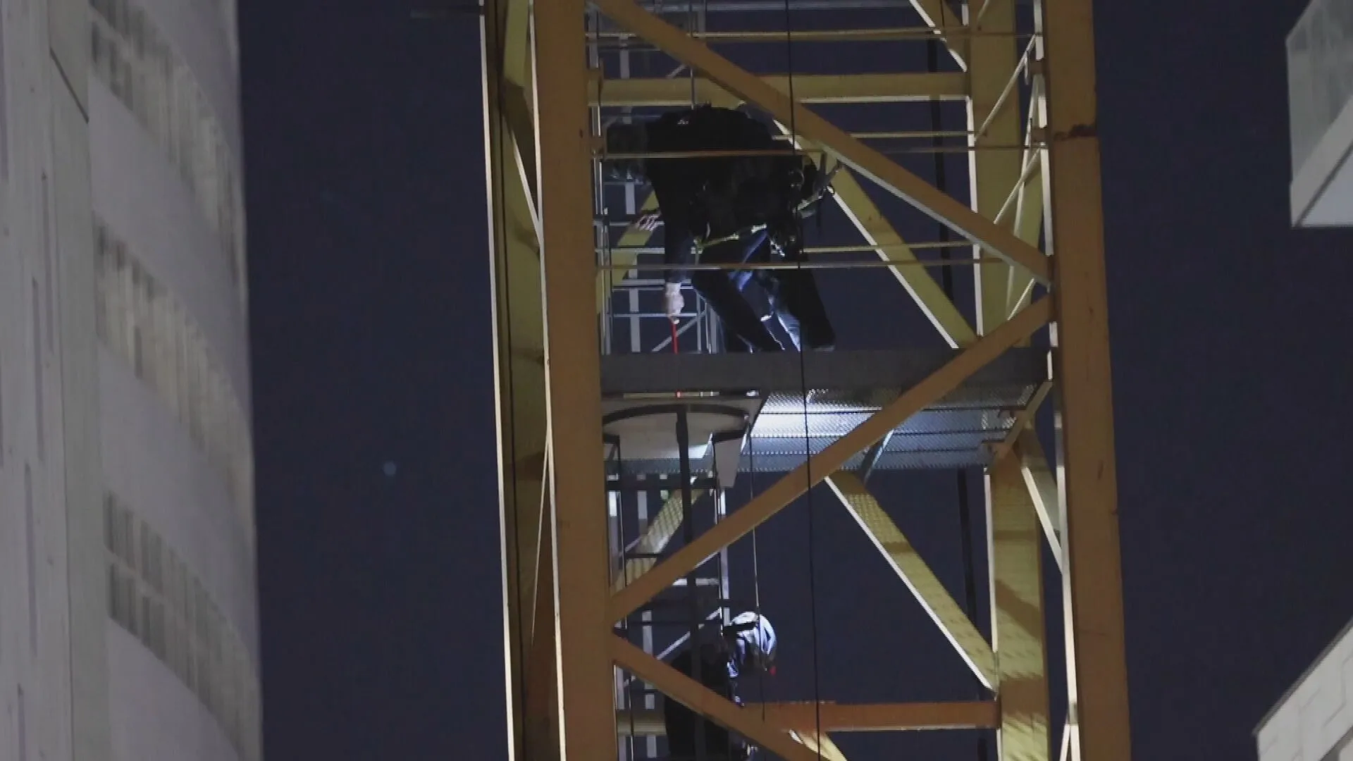 Naast meerdere politie-eenheden was er ook een onderhandelaar ter plaatse. Via het balkon van een naastgelegen appartementencomplex probeerden politie en de onderhandelaar contact te maken met de man. Uiteindelijk moesten experts van het arrestatieteam, die gespecialiseerd zijn in het werken op hoogte, eraan te pas komen. Rond 00:15 uur klommen zij de hijskraan in en wisten zij de man te overmeesteren.