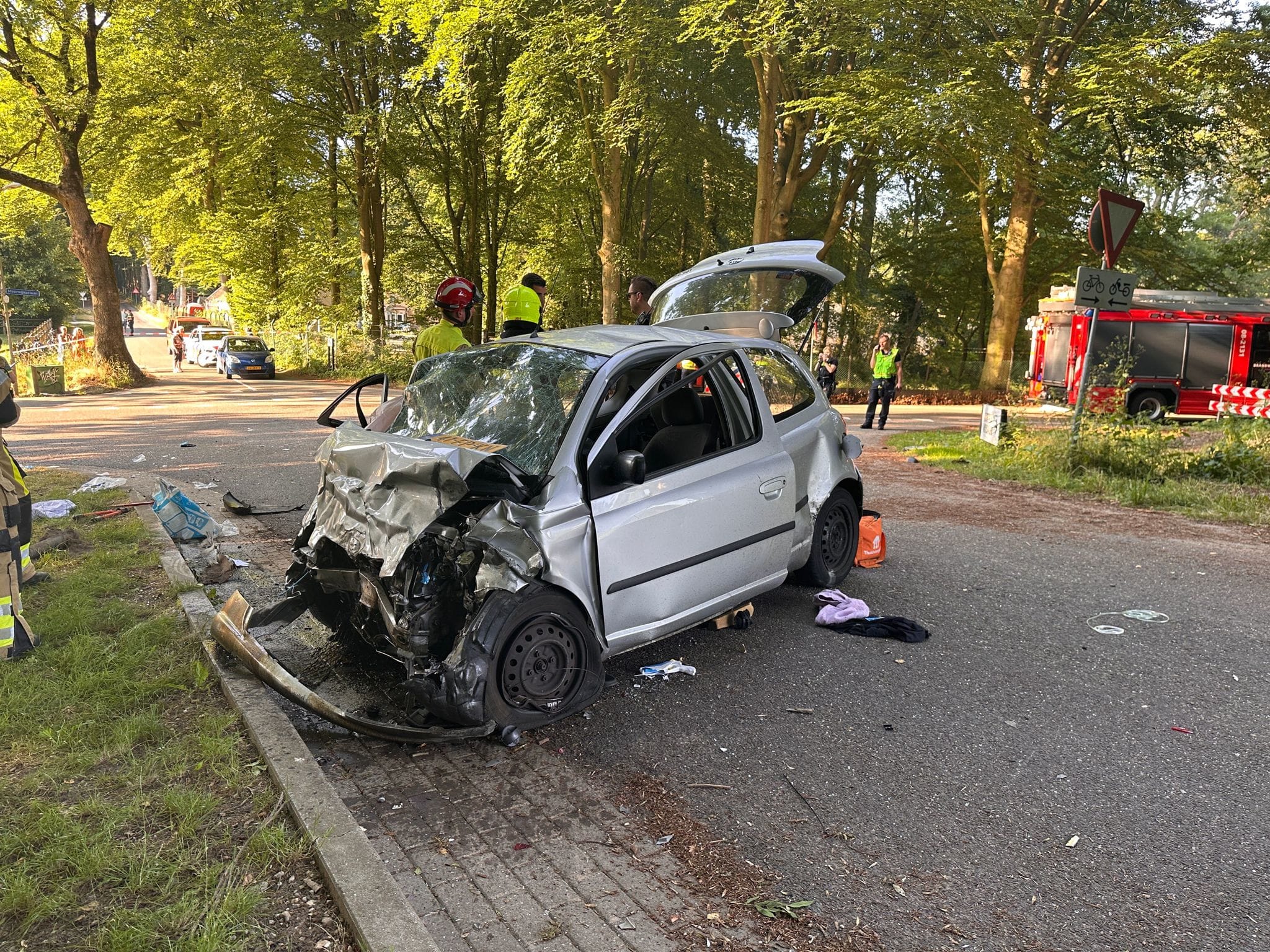 Het ongeval gebeurde op de kruising van de Meerwijkselaan en Postweg. De politie spreekt van "een hele harde klap" en heeft een onderzoek ingesteld naar de toedracht van het ongeluk.