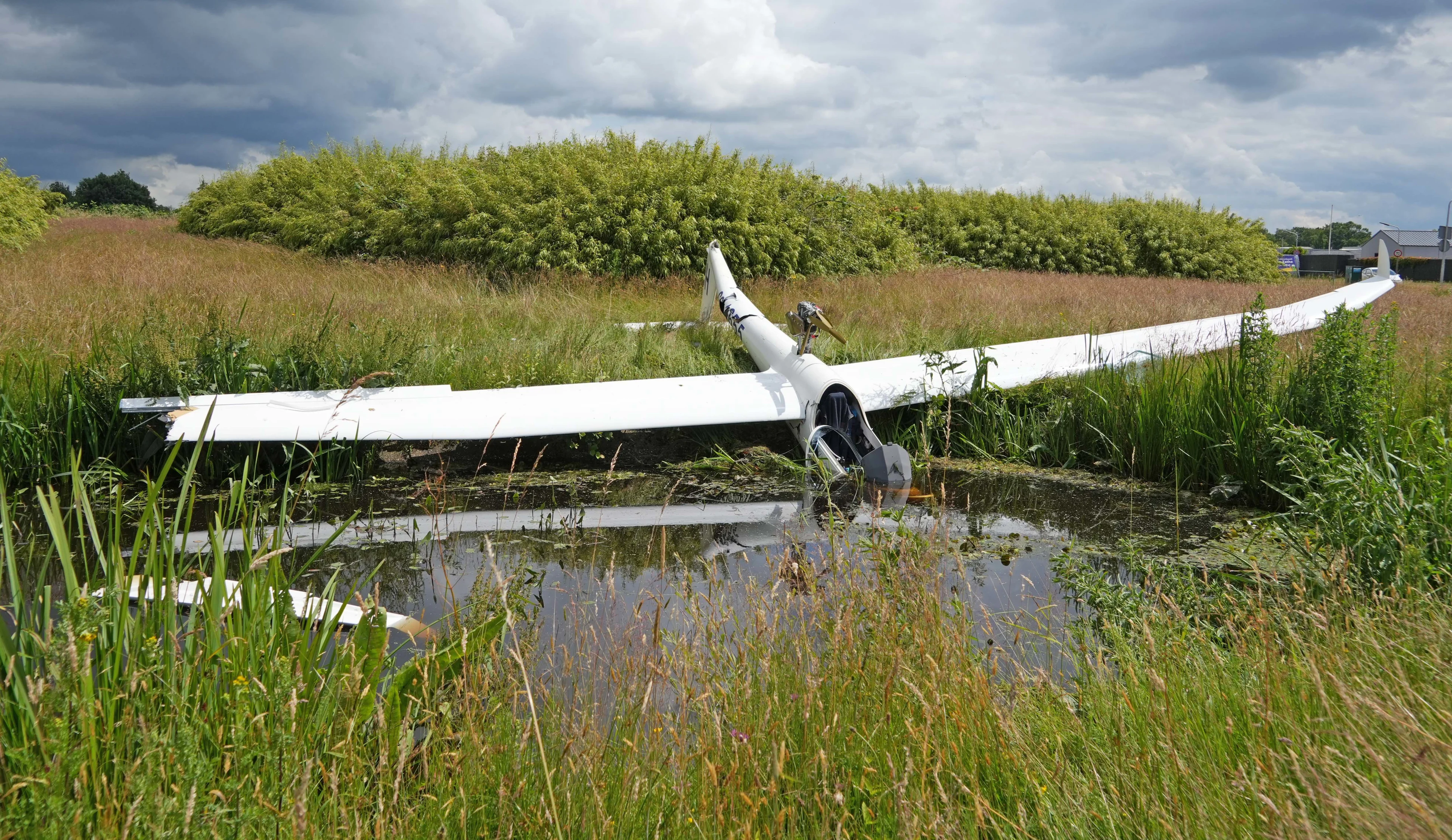 Het ongeval gebeurde aan het begin van de middag. Volgens een correspondent zou het vliegtuig tijdens de landing een lantaarnpaal hebben geraakt, waarna het op zijn kop in een sloot tot stilstand is gekomen. De brandweer en ambulance kwamen ter plekke voor assistentie.