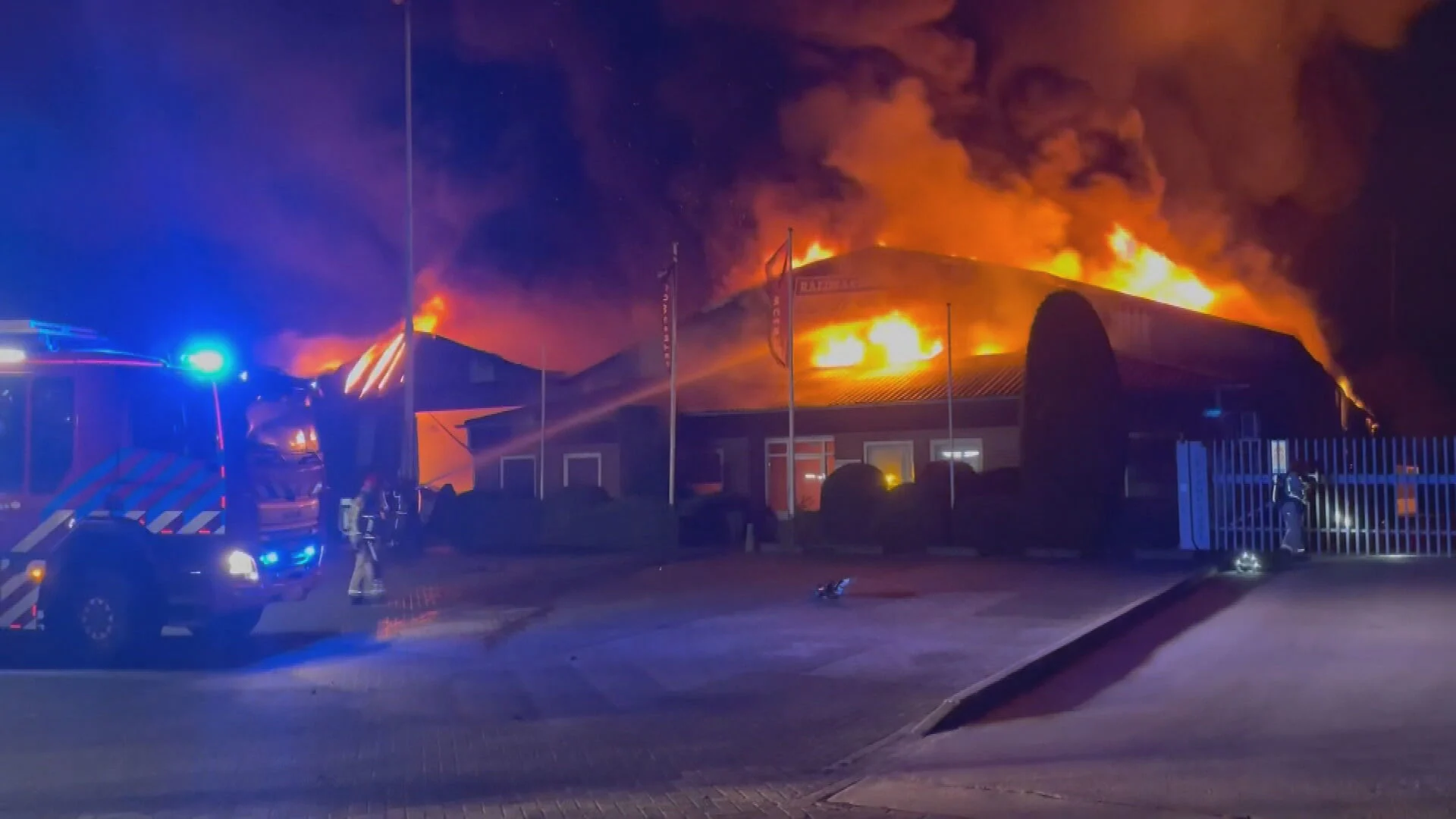 De brandweer heeft meerdere keren opgeschaald om overslag naar een ander pand te voorkomen. Dat lukte niet, het vuur wist het pand toch te bereiken. Mogelijk staan er vrachtwagens in de loods opgeslagen, maar dat is niet zeker, zegt een woordvoerder van de veiligheidsregio tegen Hart van Nederland. Tot nu toe is er geen NL-Alert verstuurd vanwege de rook. Wel raadt de brandweer aan om uit de rook te blijven en ramen en deuren gesloten te houden.