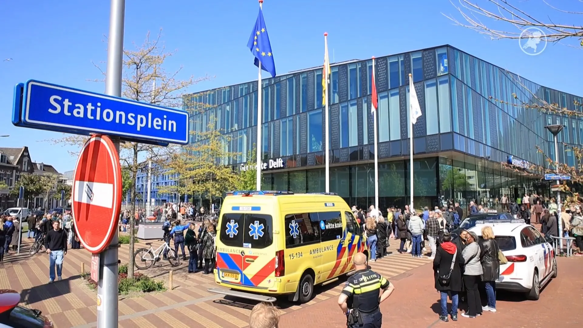 Het stadskantoor in Delft is dinsdagmiddag ontruimd na een brand bij de ingang van het gebouw. De politie heeft een verdachte aangehouden die mogelijk brandbare vloeistof naar binnen gooide.