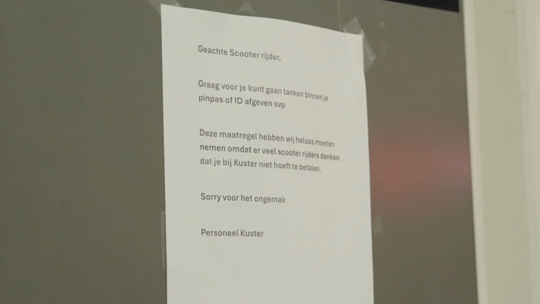 Daarom hangt er nu een duidelijk briefje bij de winkel van het tankstation. Scooterrijders moeten voortaan eerst naar binnen komen en een ID of pinpas afgeven voordat ze mogen tanken. Pas daarna kan de brandstof worden gepompt.