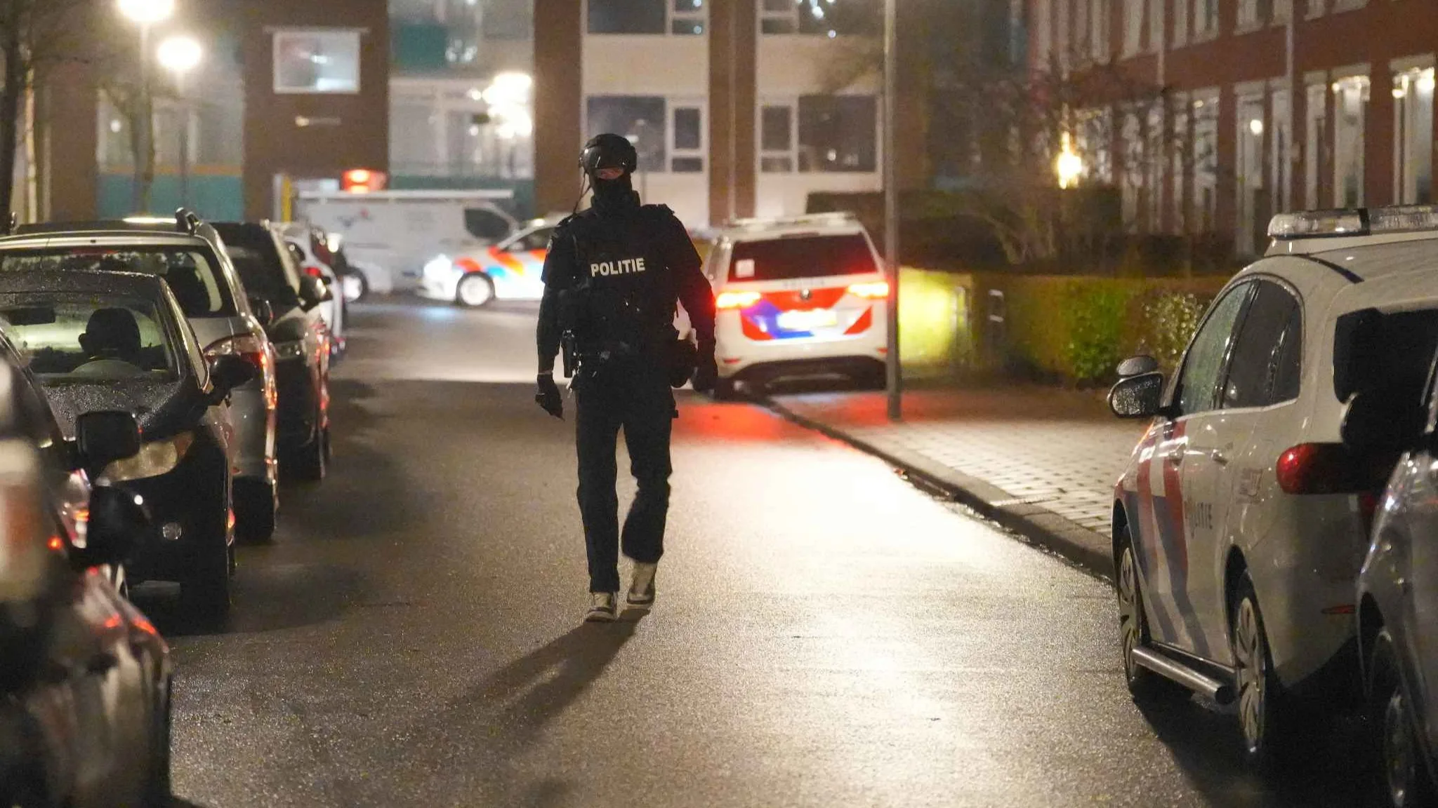 Een correspondent ter plaatse meldt dat in een naastgelegen hofje later een inval is gedaan. Het is niet bekend waarom er een inval is gedaan en of er mensen zijn aangehouden.