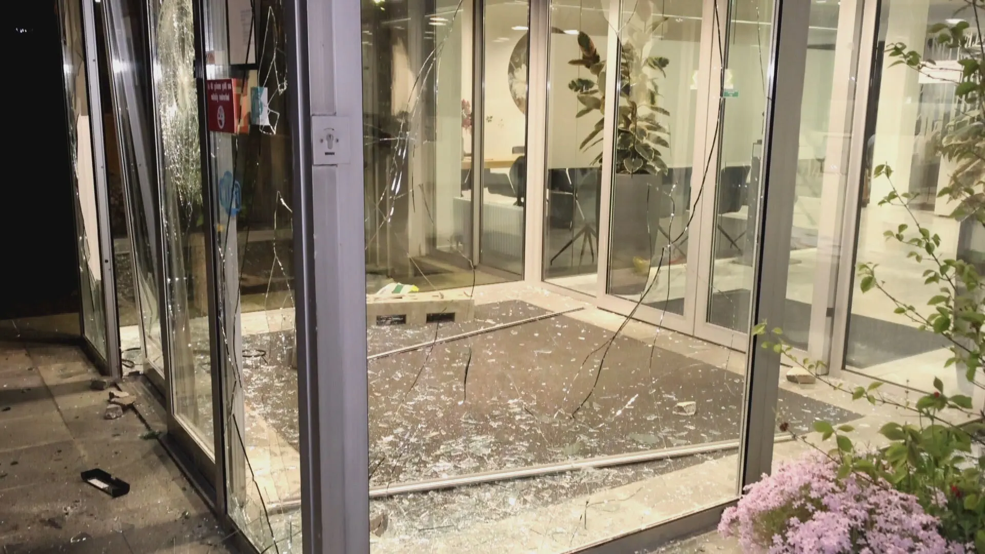 De gemeente Wijdemeren, waar Loosdrecht in ligt, meldde maandagavond laat dat één persoon zou zijn aangehouden voor de vernielingen. De politie kan die aanhouding dinsdagochtend nog niet bevestigen. Wel meldt een woordvoerder dat "een groep actievoerders" verantwoordelijk is voor het gooien van stenen door de ruiten van het leegstaande gemeentepand. Om hoeveel mensen het gaat, kan de politie niet zeggen.