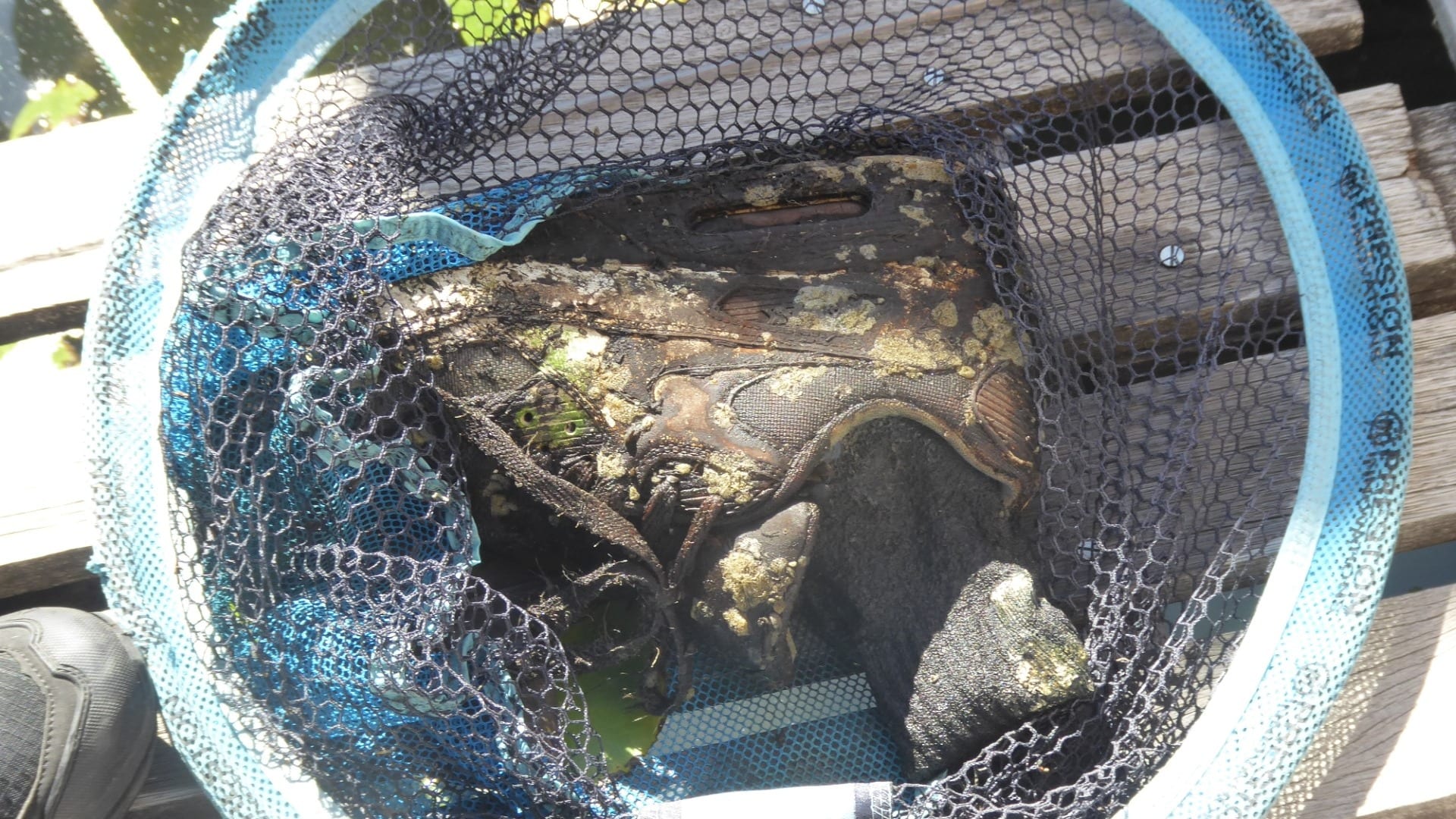 Ze woont op een woonark en zag vanuit haar tuin iets in het water drijven. "Ik dacht dat het een verdwaalde schoen was, dus ik viste hem eruit", vertelt ze tegen Hart van Nederland. "In de sok in de schoen zat een stuk bot. Die viel nadat ik het eruit haalde in het water, maar het bot van een voet zat nog in de schoen."