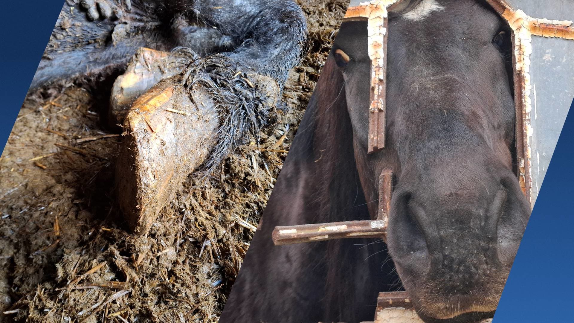 In een vervallen schuur in Westerwolde zijn vorige week drie zwaar verwaarloosde paarden aangetroffen. Dat meldt de Landelijke Inspectiedienst Dierenwelzijn (LID). De dieren stonden zonder droge plek, tussen modder, urine en ontlasting door gaten in het dak en de muren.