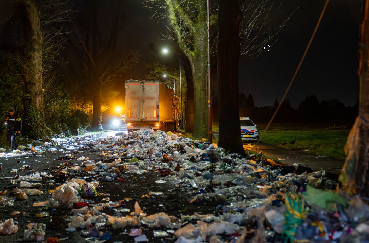 Op de N348 tussen Zutphen en Deventer is bij Epse een vrachtwagen hard tegen een boom gereden. Door de klap scheurde de trailer open, waardoor een grote hoeveelheid geperst huisvuil op de weg terechtkwam.