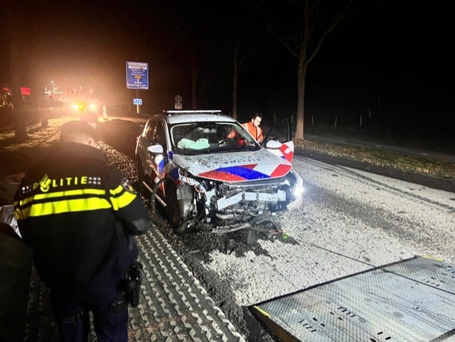 In het Limburgse Haelen is maandagavond een politieauto hard gecrasht. De wagen werd op de N273 gelanceerd toen de agenten over een berg asfalt reden die op de weg lag. Dat meldt een correspondent ter plaatse.