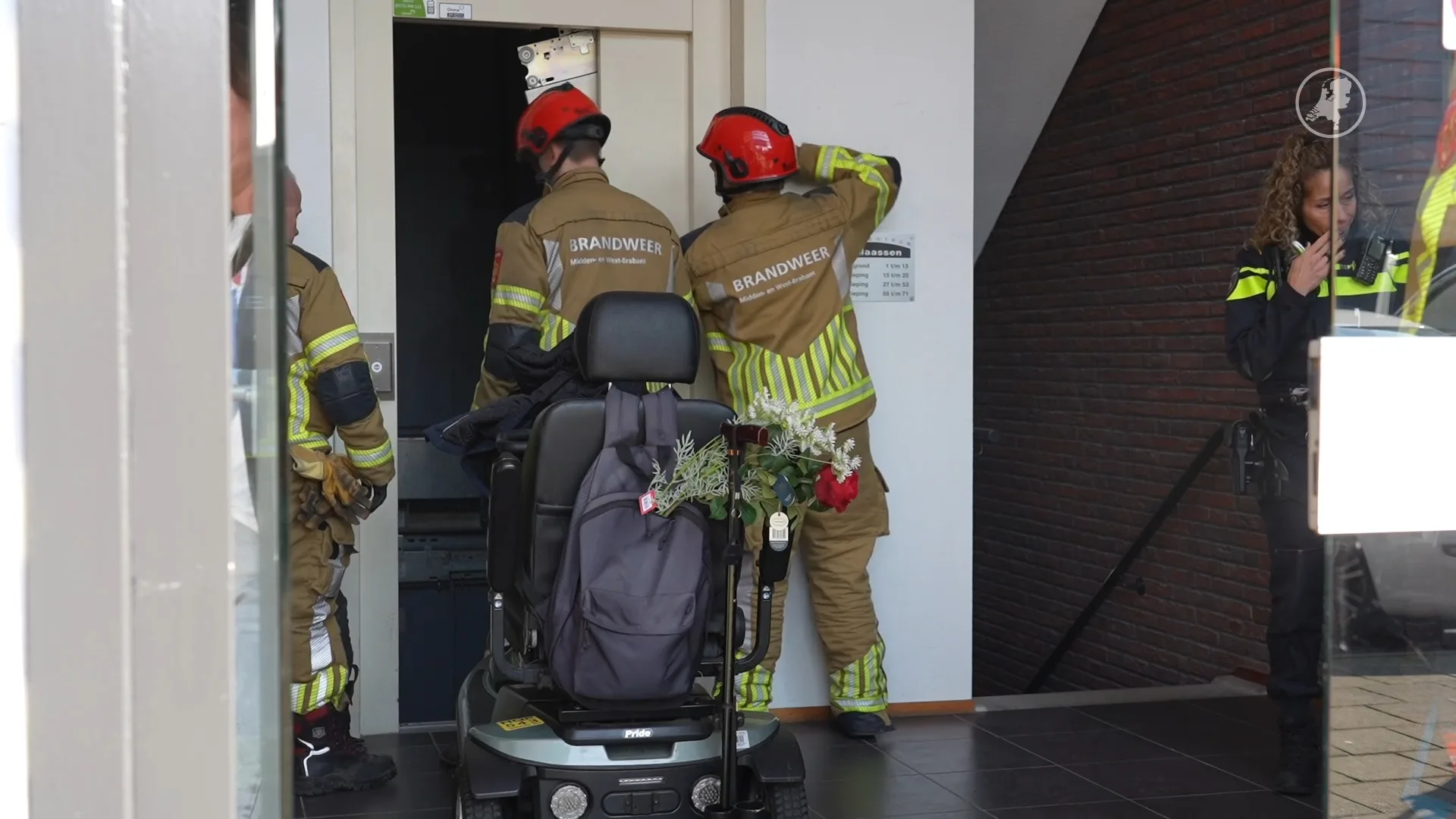 Woensdagochtend is een bejaarde vrouw in de Noord-Brabantse gemeente Dongen tegen een dichte liftdeur gecrasht met haar scootmobiel. De brandweer is ter plaatse gekomen om de vrouw te redden.