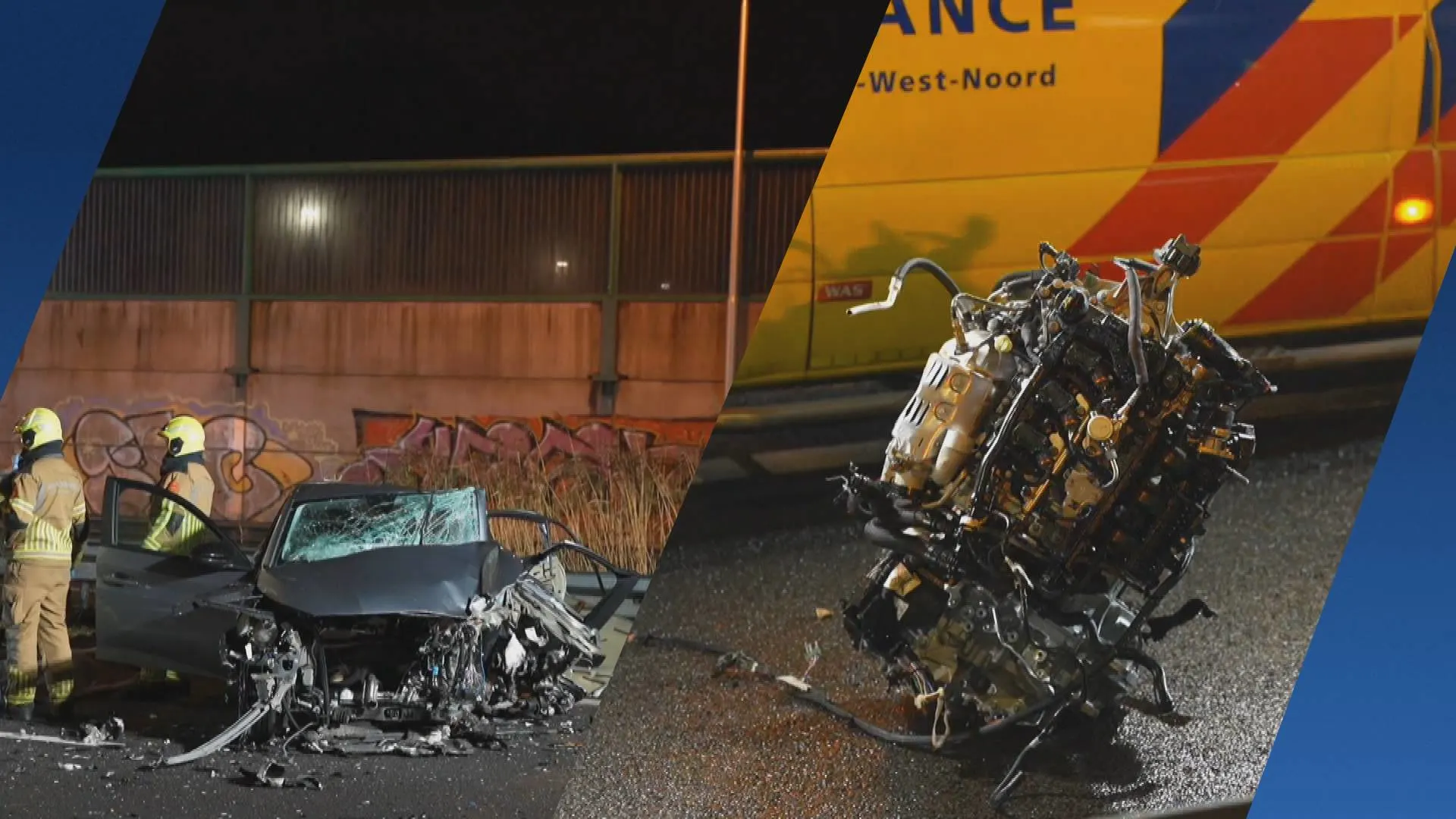 Het ongeluk gebeurde kort na middernacht in de richting van knooppunt Hooipolder. Hulpdiensten arriveerden op de plaats van het ongeluk en zagen een grote ravage, aldus de politie. Zo lag het motorblok van een van de auto's op de weg.