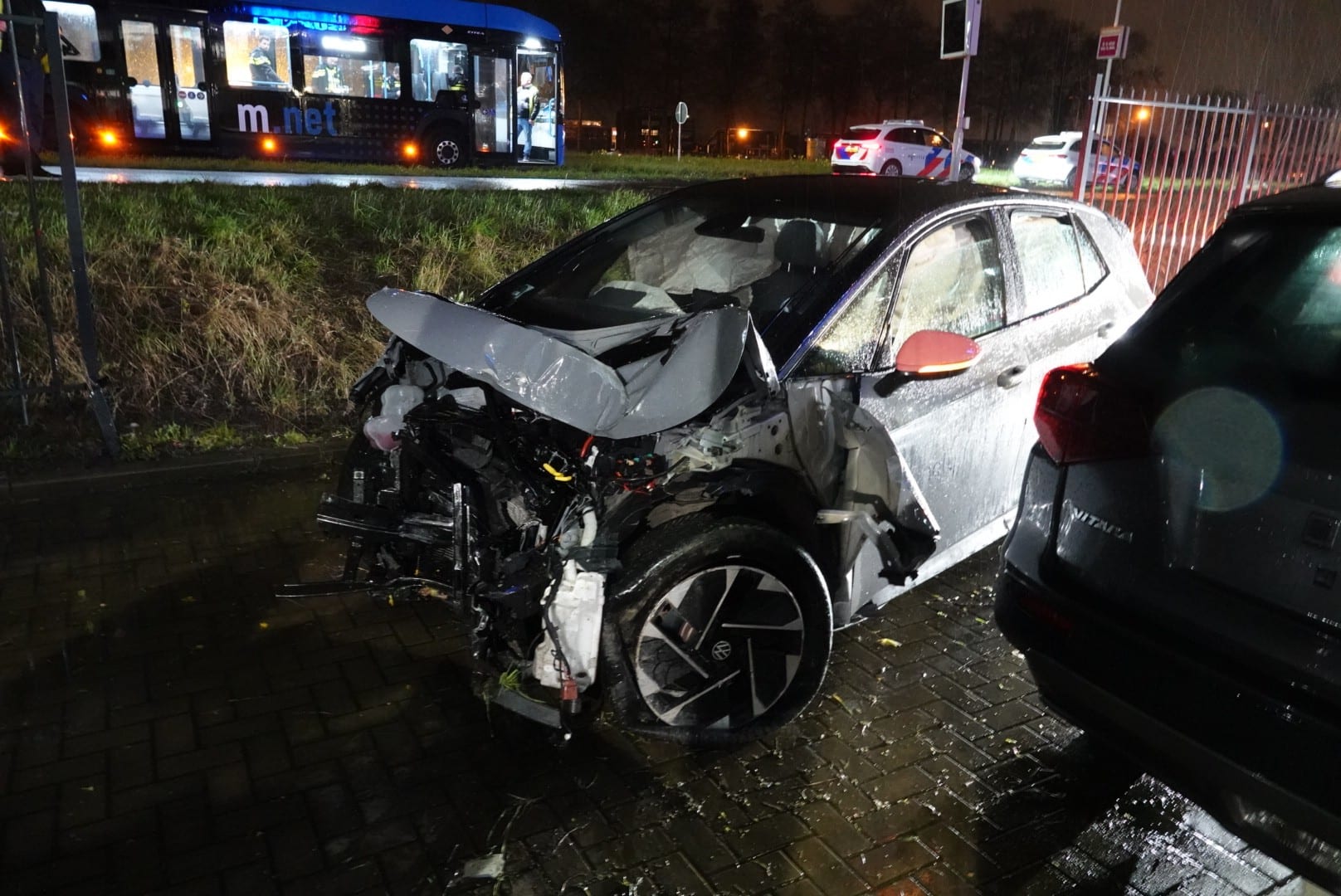 Door de afgebroken lantaarnpaal die op de weg lag en de slechte weersomstandigheden botste korte tijd later een tweede automobilist tegen het obstakel. Ook deze auto liep aanzienlijke schade op.