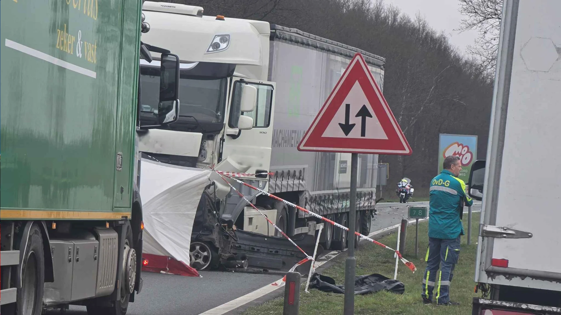 Hulpdiensten, waaronder ambulance, brandweer en politie, zijn massaal ter plaatse. Volgens de politie is de bestuurder van de personenauto bij het ongeval om het leven gekomen.