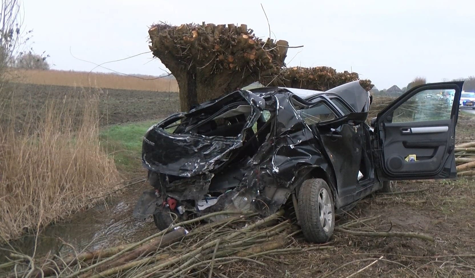 Het ongeluk gebeurde rond 16.00 uur. Een bestelbus botste hard achter op een personenauto, meldt een correspondent ter plaatse. Door de klap schoot de auto van de weg en kwam tegen een boom tot stilstand. Over de toedracht is nog veel onduidelijk.