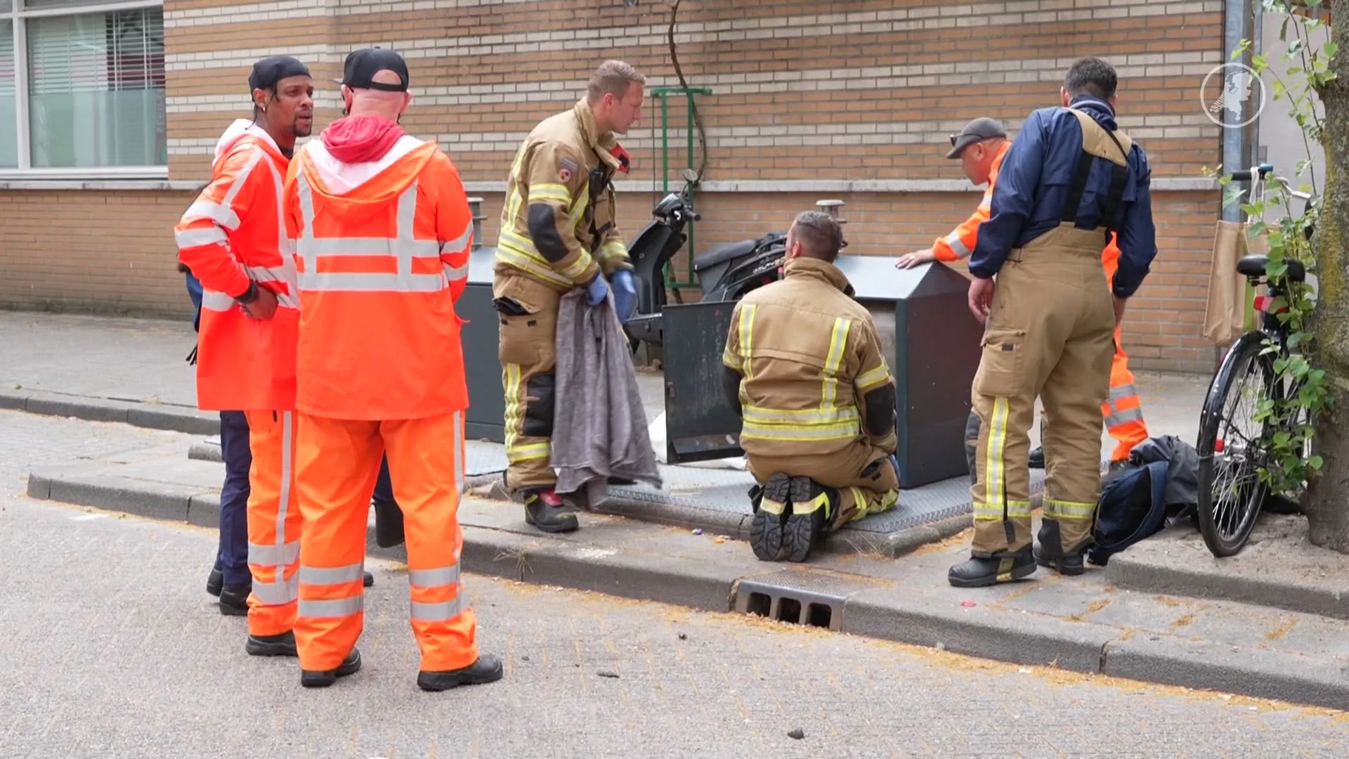 Een vrouw zou persoonlijke bezittingen in de ondergrondse container zijn verloren, meldt een correspondent. In een poging de spullen terug te halen klom de man vervolgens de container in, waarna hij vast kwam te zitten.