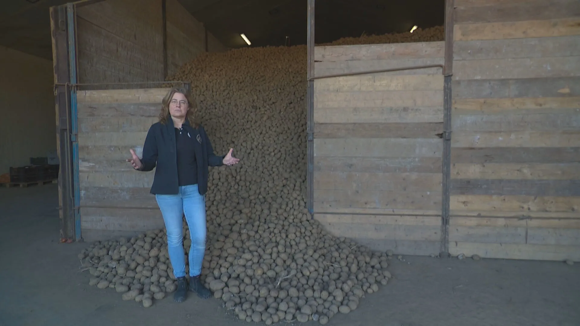 Ook aardappeltelers Diny en Ard-Jan Oomen uit Raamsdonk merken de gevolgen. Zij hebben niet meer geteeld dan in andere jaren, maar zitten nu met een enorme berg aardappelen.