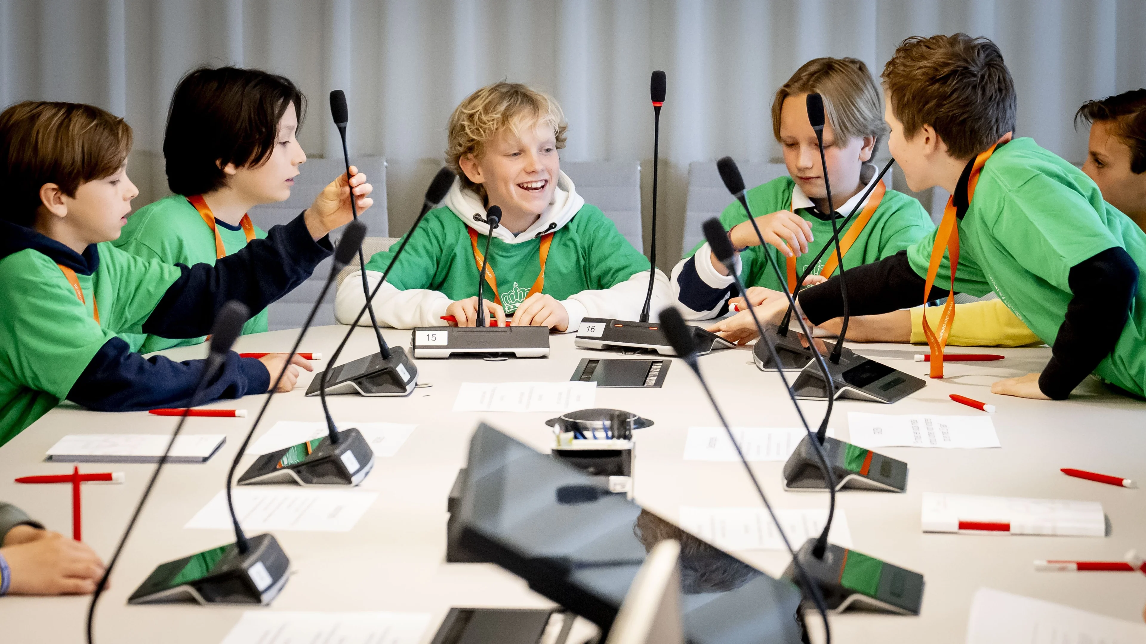 Basisschoolleerlingen uit het hele land mochten vrijdag voor één dag ervaren hoe het is om Kamerlid te zijn. In de Eerste Kamer gingen zij met elkaar in debat over onderwerpen als sociale media, klimaat en woningbouw.