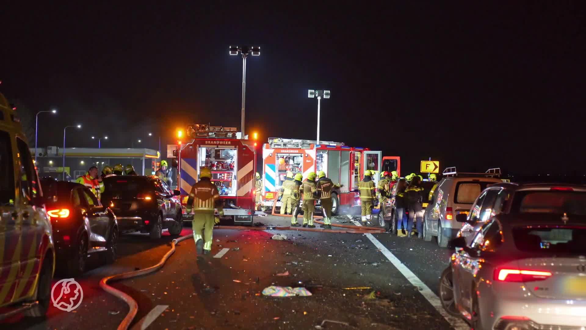 De vier dodelijke slachtoffers zaten bij elkaar in de auto, meldde de politie. Bij het ongeluk waren drie personenauto's en een vrachtwagen betrokken. Een persoon is lichtgewond geraakt. Bij het ongeval vloog één van de voertuigen in brand.