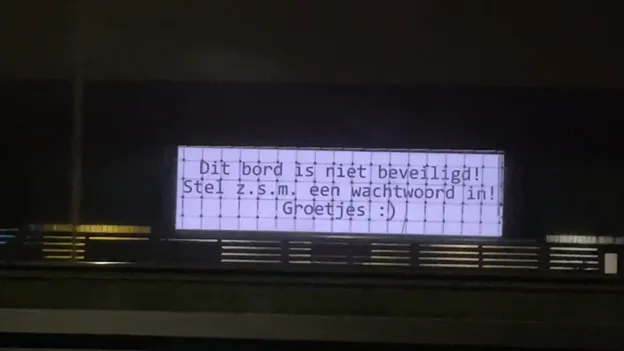 Geen flitsende video's bij The Wall langs de A2 bij Utrecht. Cas van Cooten hackte vrijdagavond de elektrische borden langs de snelweg en plaatste er een heel andere tekst op: 'Dit bord is niet beveiligd! Stel z.s.m. een wachtwoord in! Groetjes'. "Het is echt heel gaaf als je ziet dat je iets gedaan krijgt, het voelt een beetje als scoren", vertelt Van Cooten aan RTV Utrecht.
