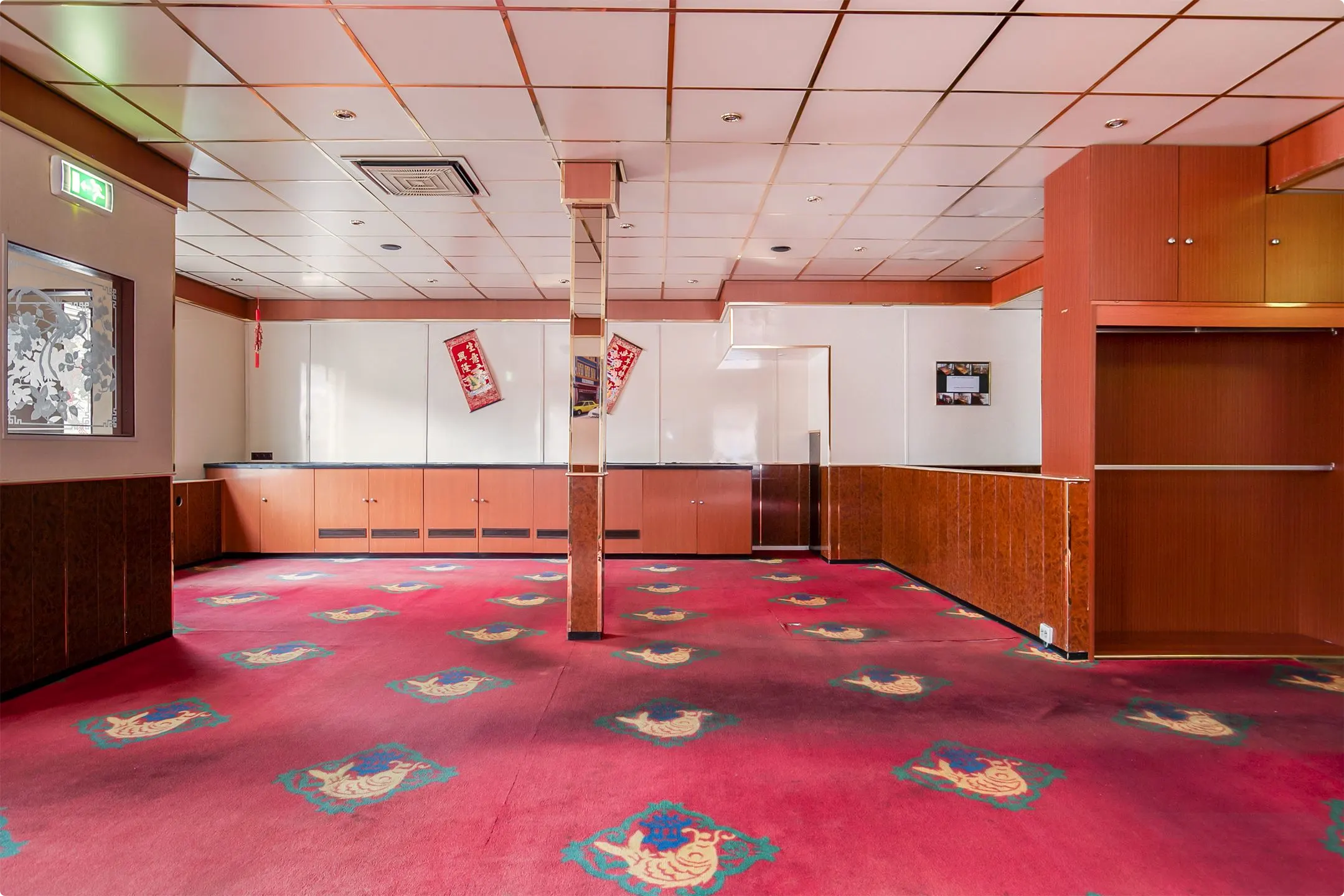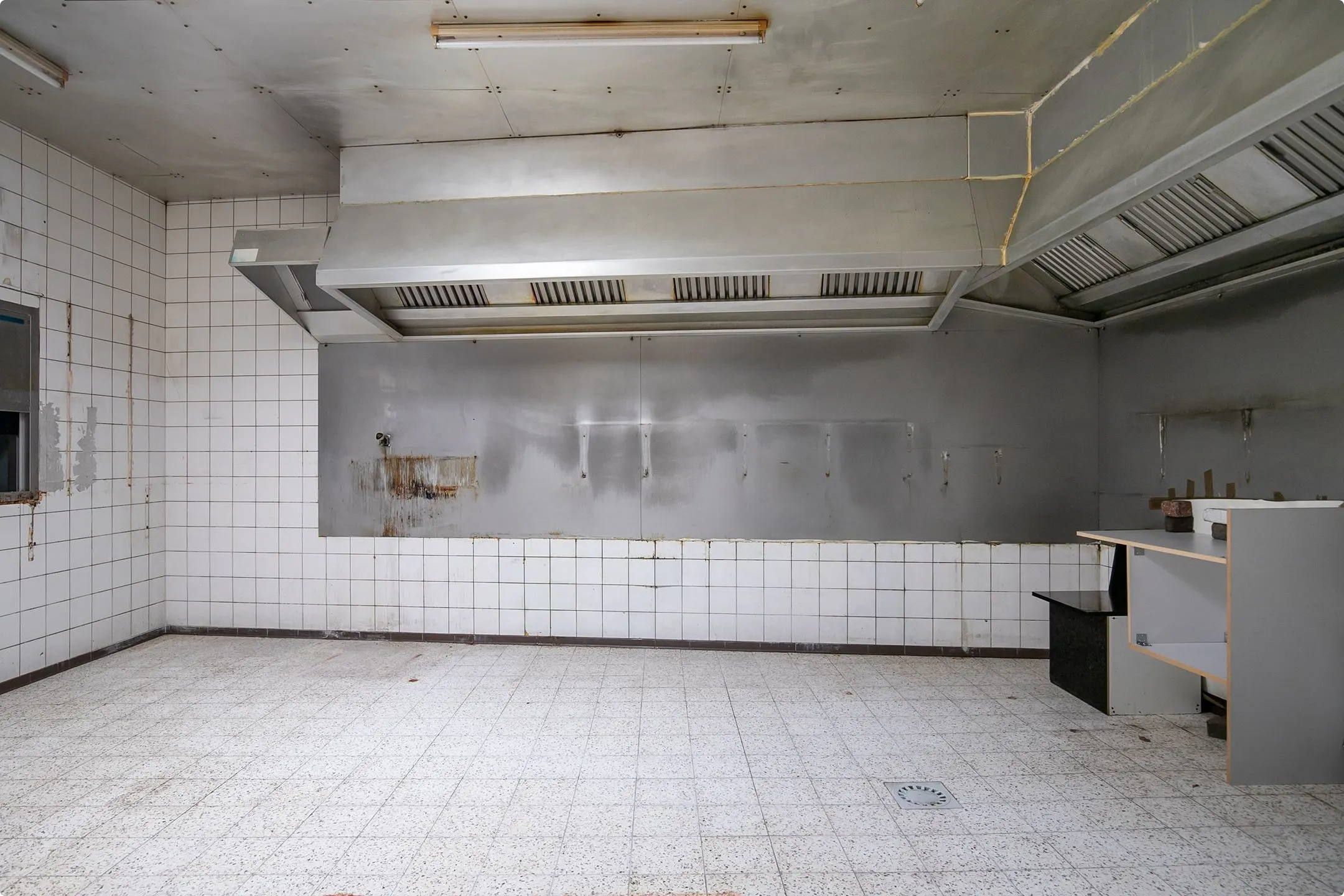 Ook de keuken ziet er nog flamboyant uit. "De koper kan er zijn eigen Chinese maaltijd in bereiden", legt Van Nunen uit. Aan de foto's te zien wordt dat nog wel een heel karwei. Alleen de afzuigkap hangt er nog. De bedrijfskeuken moet dus nog wel verbouwd worden.
