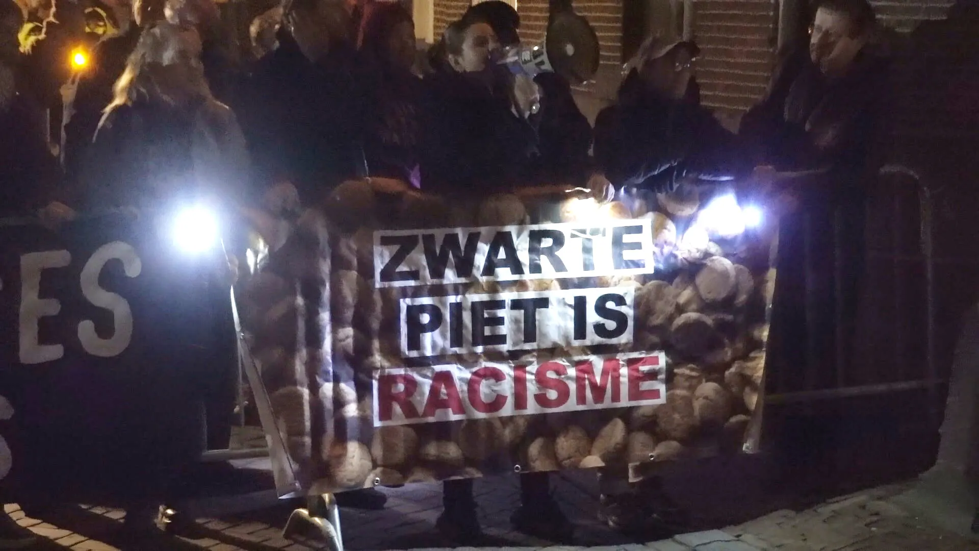 Tientallen mensen demonstreren zaterdag tijdens de sinterklaasintocht in het Noord-Hollandse Westzaan tegen Zwarte Piet. Ze staan met borden met teksten als 'Zwarte Piet is racisme' en 'black children matter'. Richting de demonstranten zijn eieren gegooid en bij vertrek werden ze door een aantal personen uitgescholden.