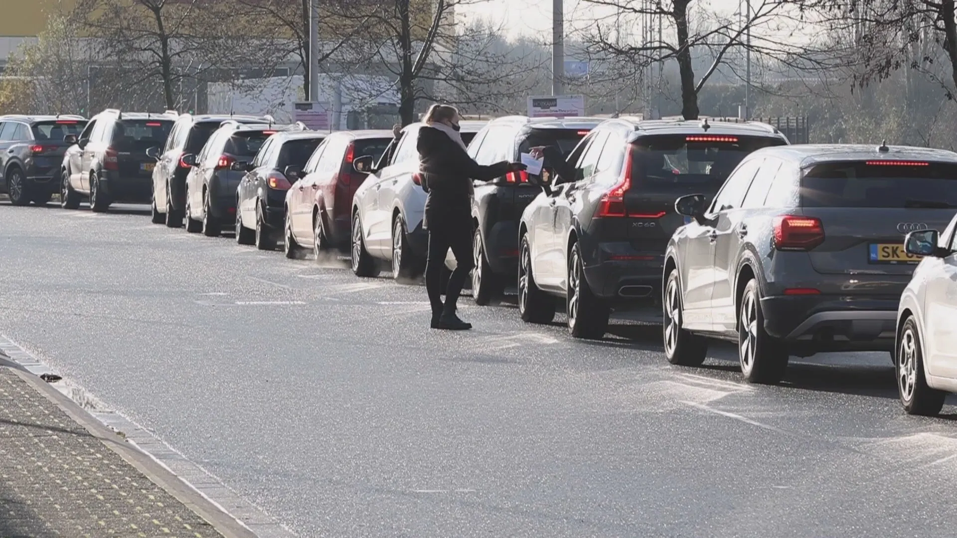De bakkerij, waar de file zich voor gevormd heeft, heeft ervoor gekozen een drive-thru op te zetten. Op die manier hoeven klanten de auto niet te verlaten en is de kans op verspreiding van corona minimaal.