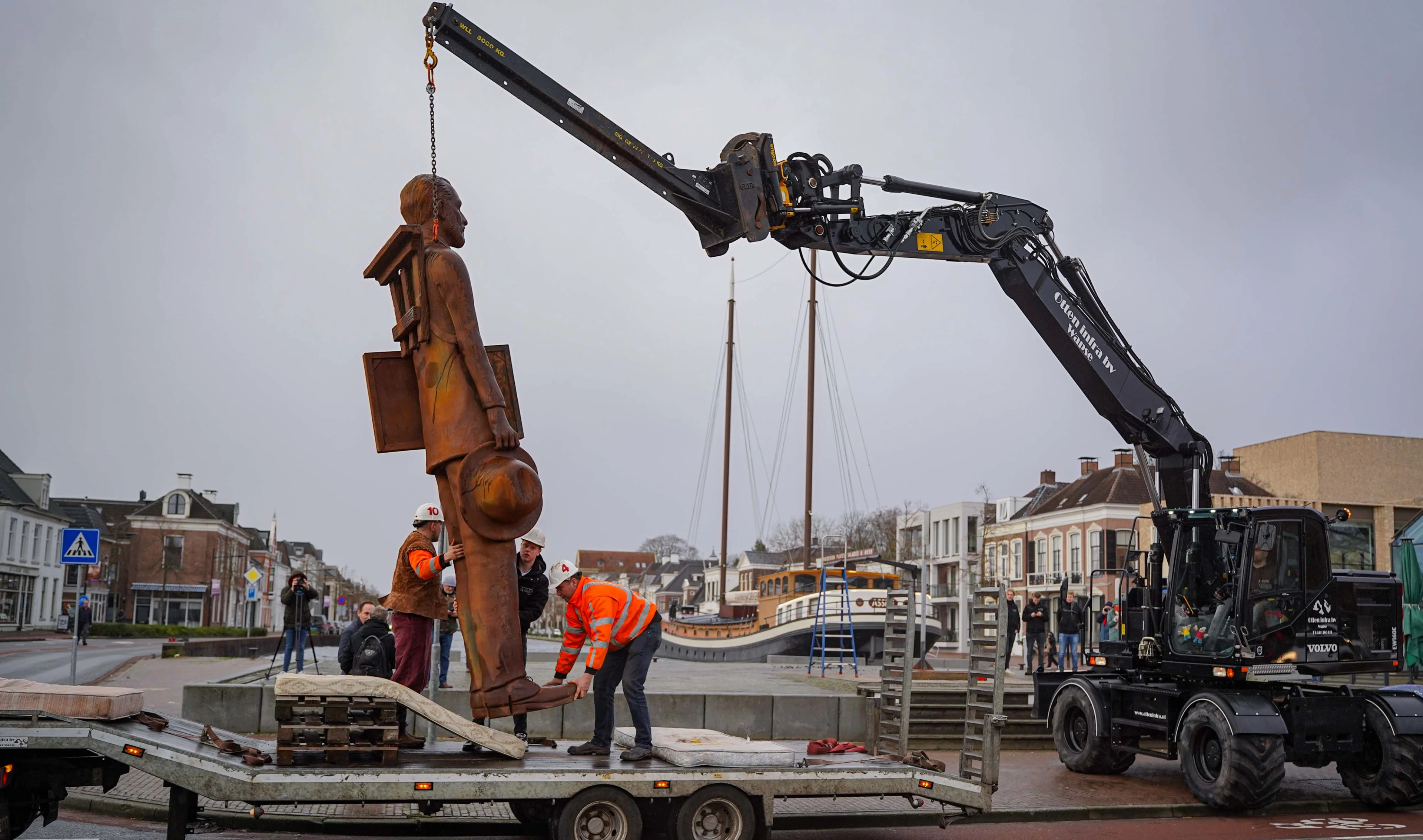 Het vorige maand gestolen beeld van Vincent van Gogh staat weer op zijn vertrouwde plek aan de Kop van de Vaart in Assen.