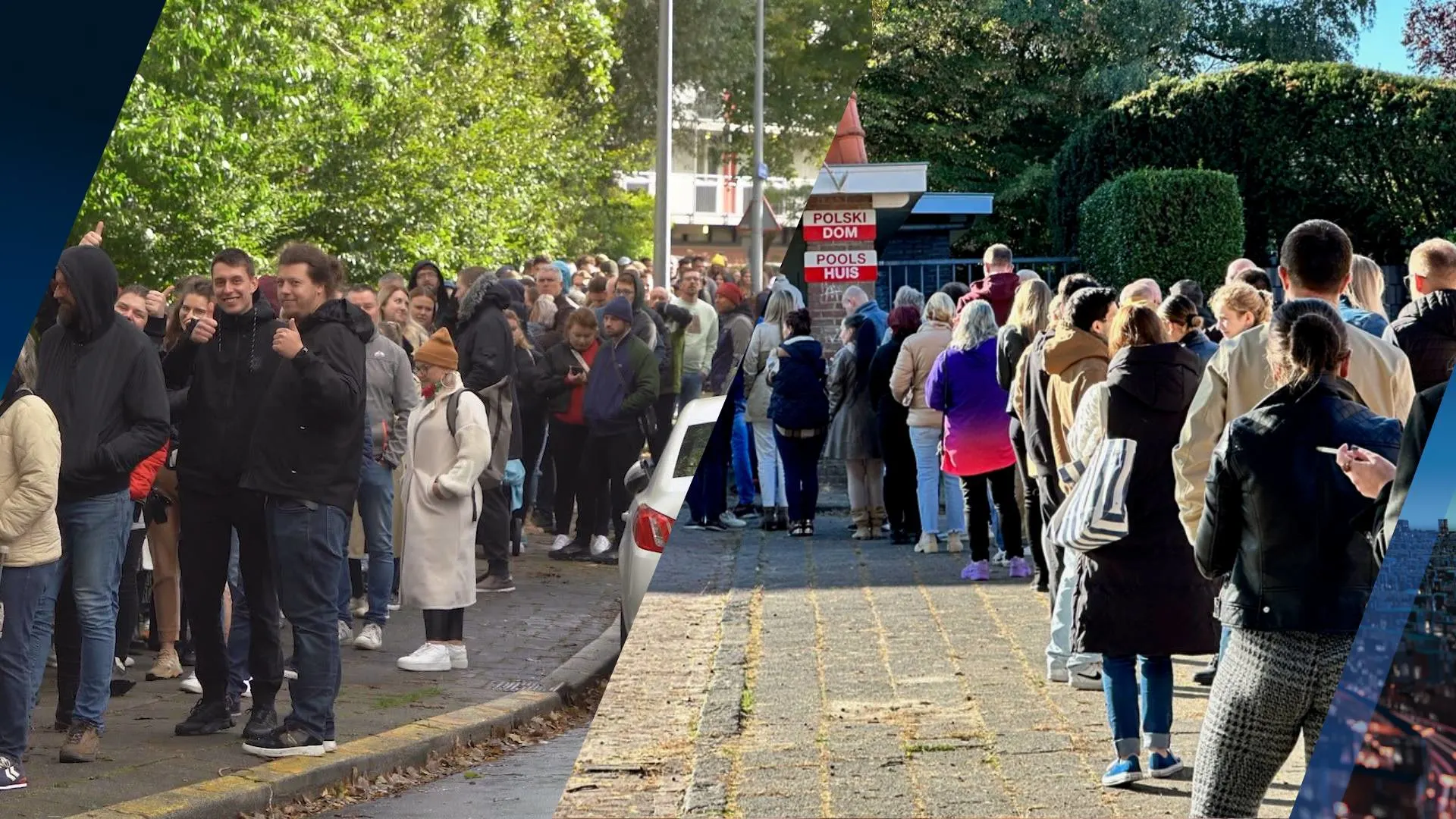 Voor de deuren van de stemlokalen vormen zich gigantische rijen, waarbij kiezers urenlang geduldig wachten om hun stem uit te brengen. Brunssum in Limburg ziet bijvoorbeeld niet alleen lokale Poolse bewoners maar trekt ook kiezers uit naburige landen zoals Duitsland en België, voor de mensen voor wie deze locatie voor hen het dichtstbij is.
