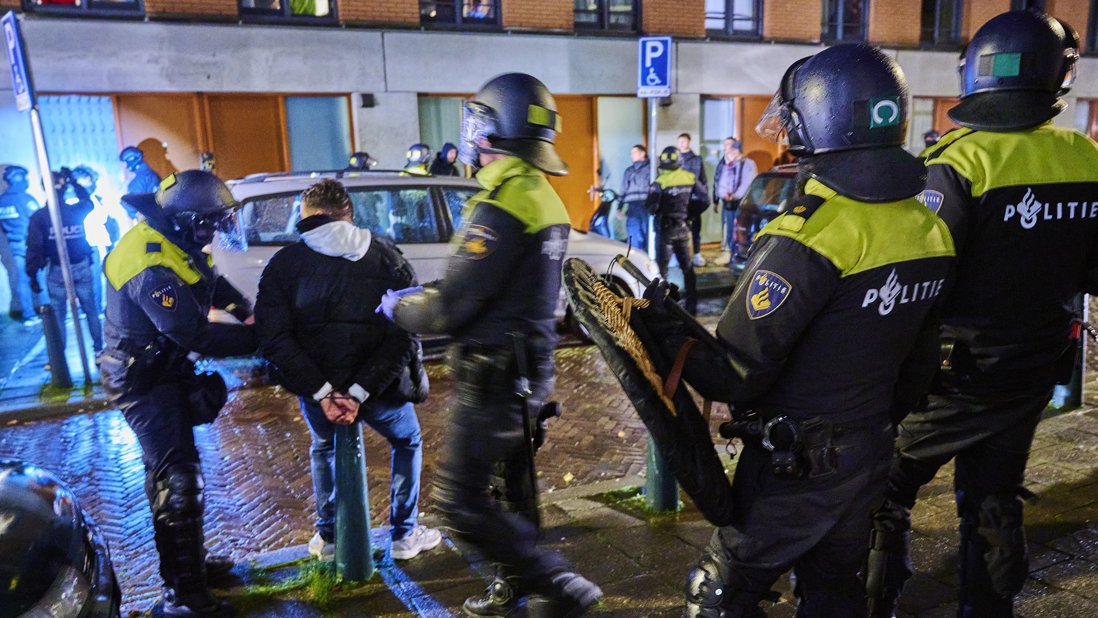 De politie heeft een 21-jarige Hagenaar aangehouden naar aanleiding van ongeregeldheden in Den Haag op zondag 27 november, na de wedstrijd België - Marokko op het WK voetbal in Qatar.