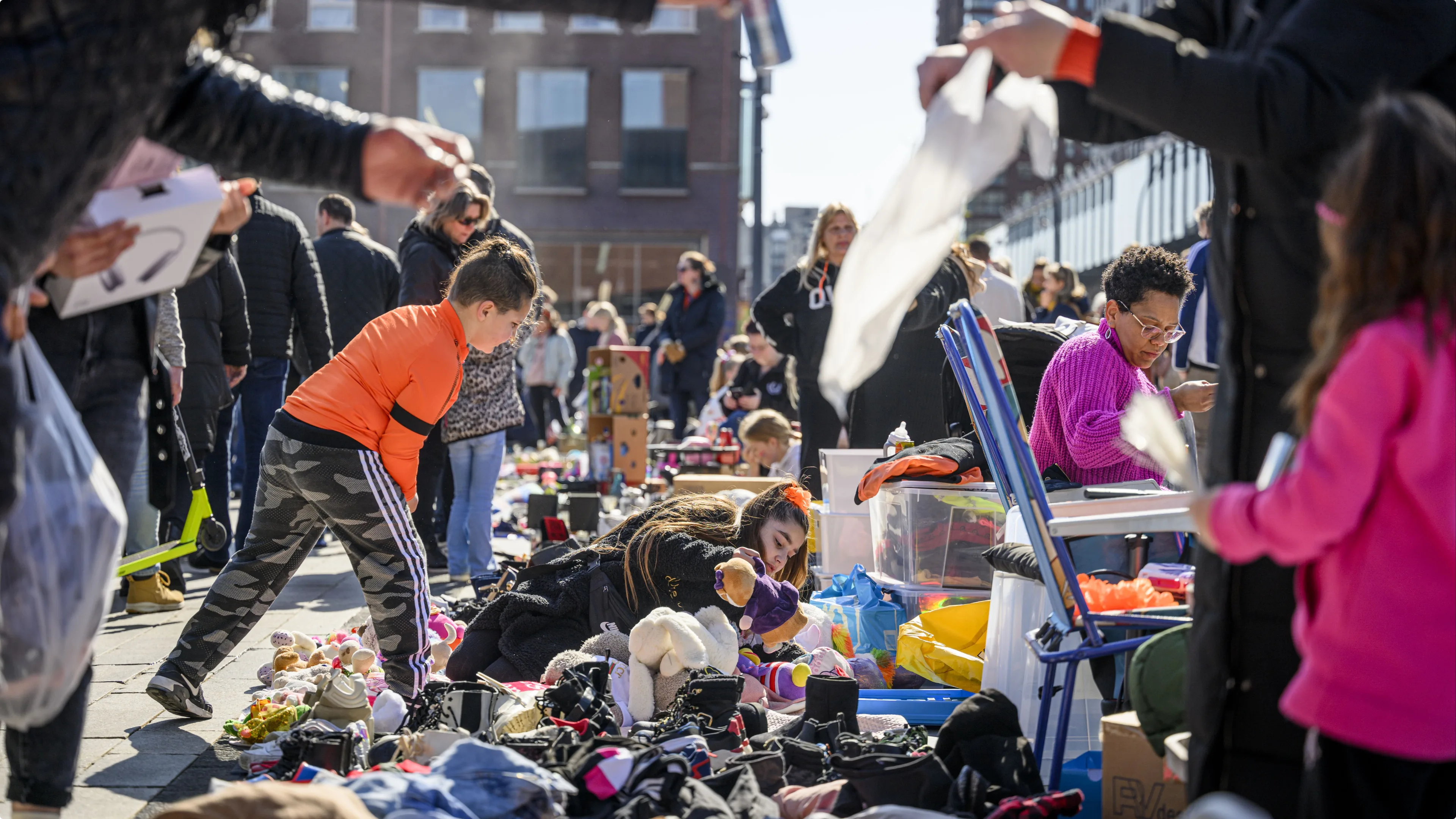 Ook in Enschede is het gezellig druk op de vrijmarkt: