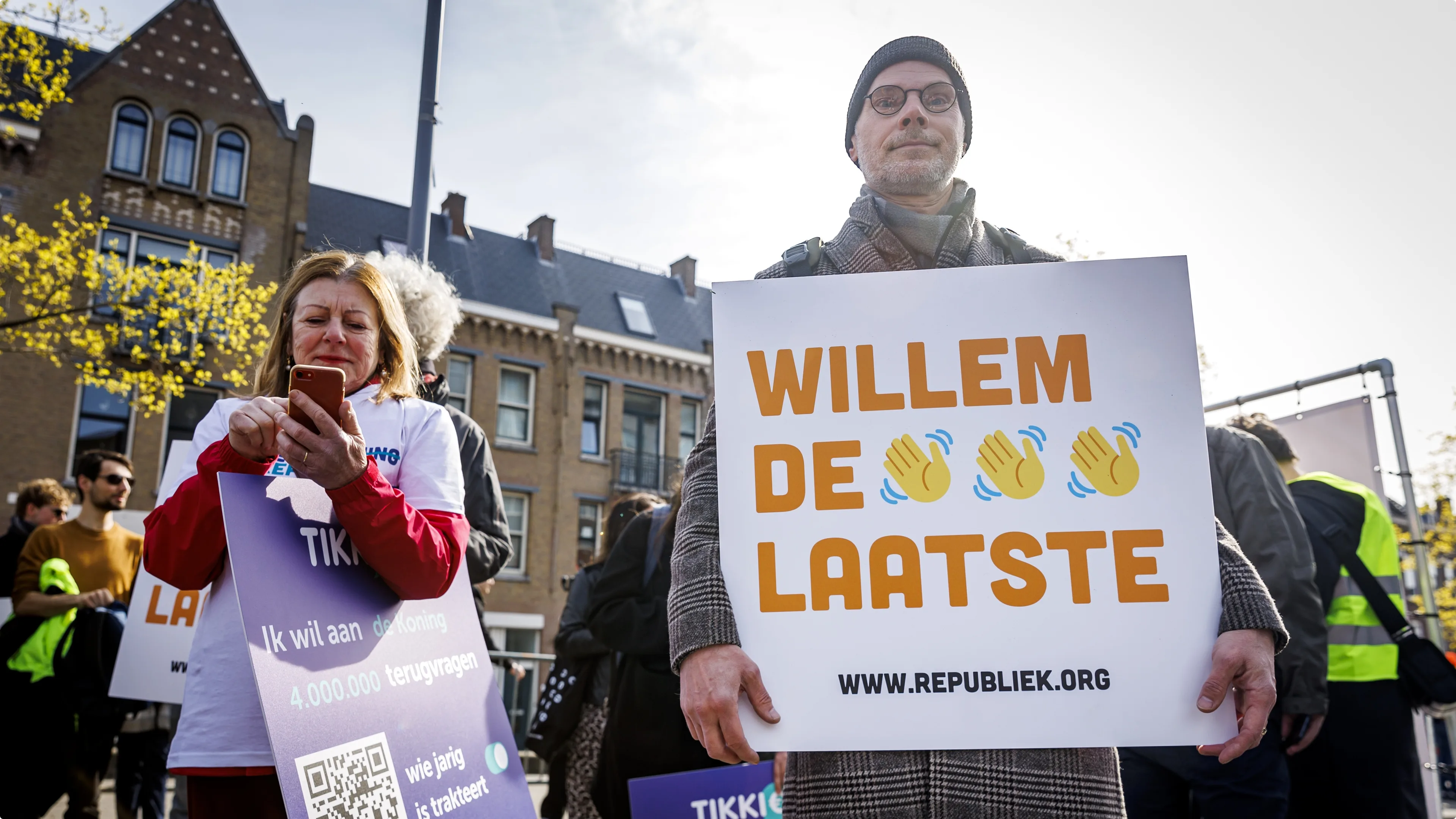 Ook staan antimonarchisten donderdag langs de route die de koning en zijn familie zullen afleggen. Ze dragen borden bij zich met onder meer de tekst 'Willem de laatste', met daarbij emoticons van zwaaiende handjes. Op een ander bord staat een kroon en de tekst 'het symbool van ongelijkheid'.