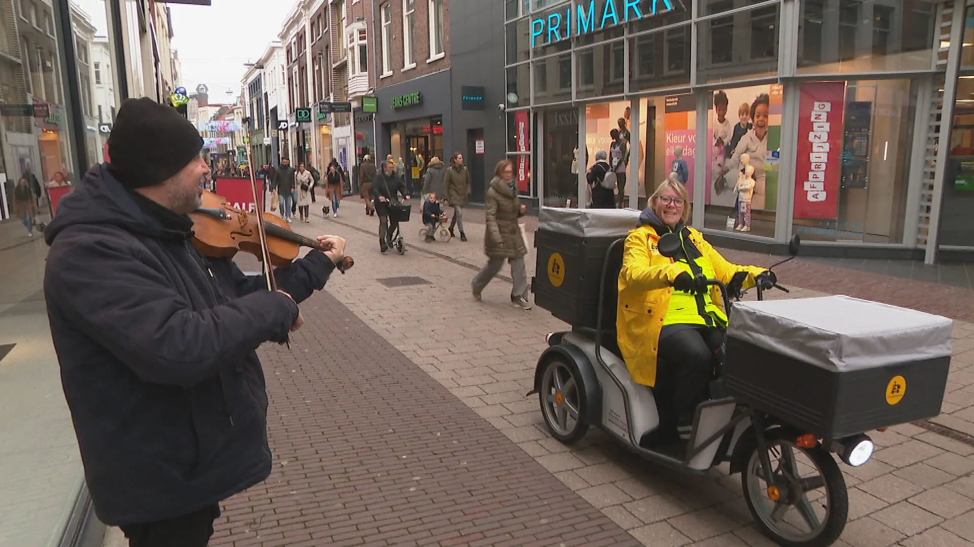 Jolanda en hij werken normaal gesproken in een sociale werkplaats, maar zijn speciaal voor de pilot op de bezorgscootmobiel geklommen. "Dit werk is veel leuker", merkt Jolanda al na twee weken. "Ik hoop dit te kunnen blijven doen."