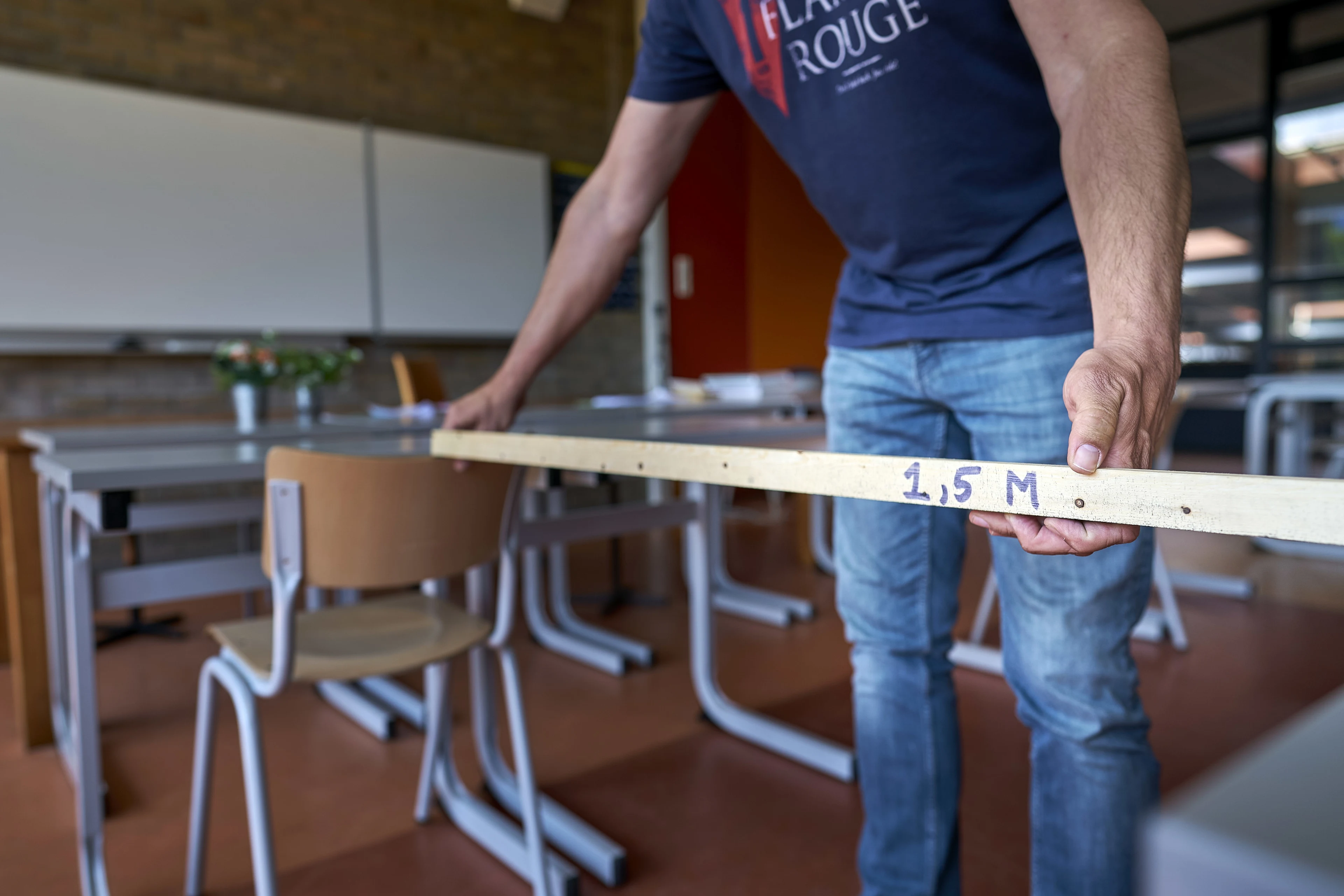 De school heeft veel veranderingen toegepast om ervoor te zorgen dat leerlingen en leraren 1,5 afstand tot elkaar kunnen bewaren. Zo is het rooster aangepast en moeten leerlingen er onder andere voor zorgen dat ze niet eerder dan twee minuten voor aanvang van de les aanwezig zijn. Bij de ingang van de school moeten ze hun handen desinfecteren. Als ze naar de les gaan, is het van belang dat de leerlingen de juiste trap nemen: heb je op de eerste verdieping les, dan neem je de grote trap, en heb je op de tweede verdieping les, dan neem je de kleine trap. Via aangegeven looproutes gaan de leerlingen naar het lokaal. Eenmaal in de les krijgen de leerlingen vaste plekken en mogen ze het lokaal niet verlaten, ook niet tijdens de pauze. Lees ook: Middelbare scholen bereiden zich 'stap voor stap' voor op heropening In de klas mogen tot slot niet meer dan acht leerlingen zitten. En in plaats van dat de leerlingen wisselen van lokaal, doen nu docenten dit. “We zijn blij dat de school weer open kan. Leerlingen waren toe aan iets anders, want het heeft heel erg lang geduurd”, aldus directrice Knol.