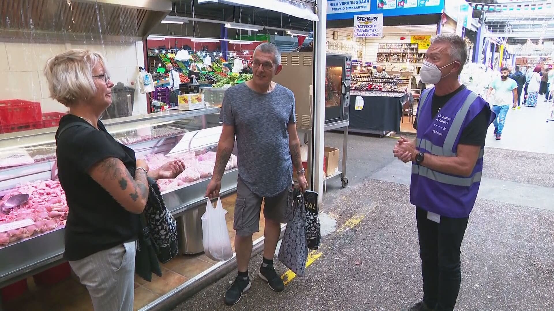 In de Beverwijkse Bazaar wordt sinds dit weekend het gebruik van een mondkapje sterk aangeraden. Met deze extra maatregel hoopt de Bazaar de veiligheid en gezondheid van zowel bezoekers als huurders beter te kunnen waarborgen. "Het is zeker geen vervangende maatregel", verzekert Mariska Roos van De Bazaar. "De 1,5 meter-maatregel blijft het belangrijkste. Maar soms kom je in een hal waar het toch ineens wat drukker is. We willen geen risico nemen, vandaar het advies van de mondkapjes." Op dit moment is het dragen van een mondkapje nog niet verplicht in de overdekte markt, wel lopen er handhavers rond om met bezoekers zonder mondkapje in gesprek te gaan. "Top nu toe heb ik alleen nog maar goede reacties gehad", vertelt Hans Pleging, één van de handhavers. "Opvallend vaak hadden mensen ook al een kapje bij zich." Lees ook: Winkeliers willen mondkapjes verplichten in drukke straten: 'In de trein zijn we het ook gewend'