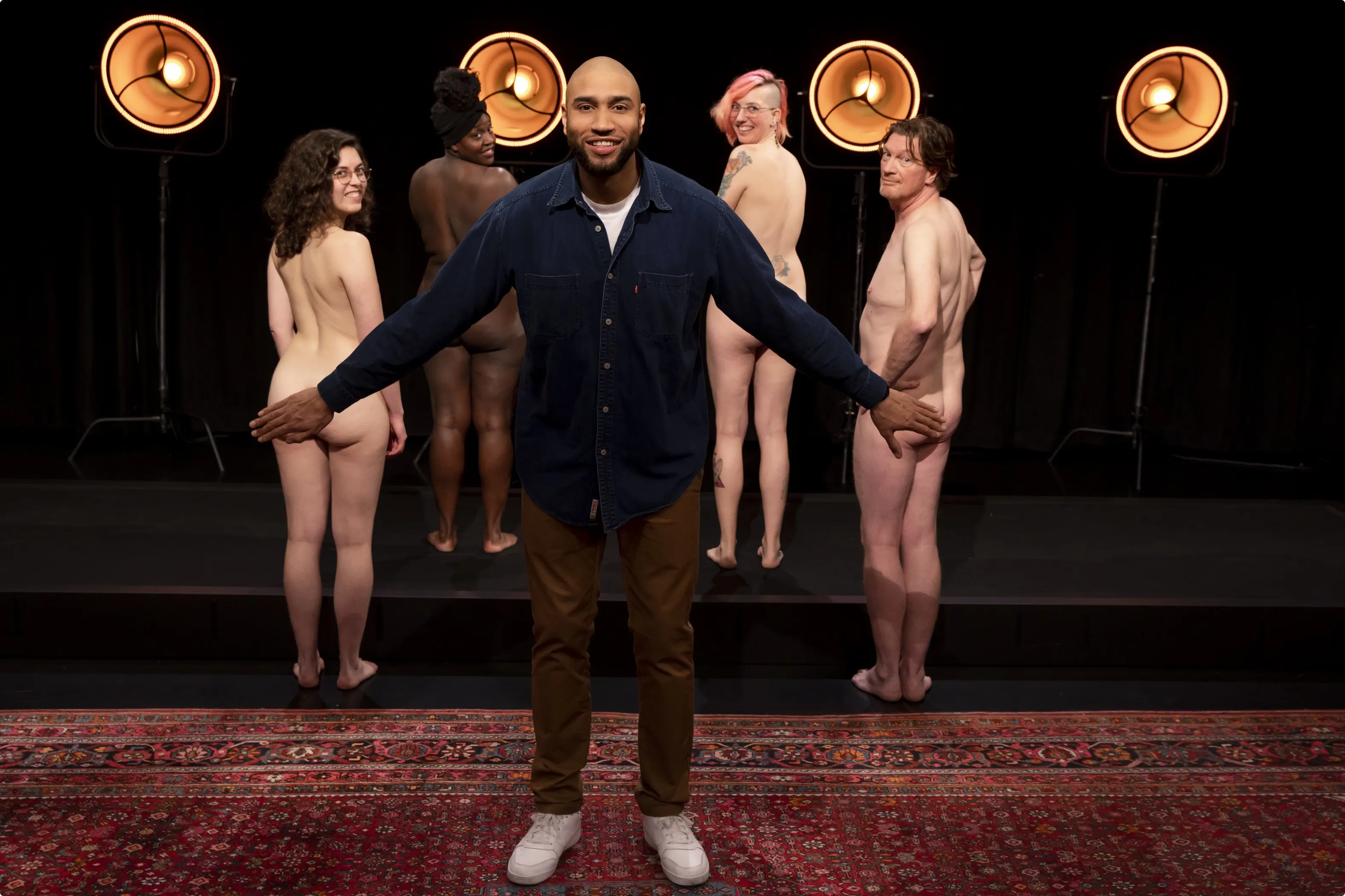 Het programma trapte af met een waarschuwing. "Let op. Binnen enkele minuten zijn in dit programma Blote. Lichamen. te zien." Presentator Da Graça benadrukt daarop dat dat je je nooit zomaar voor een ander moet uitkleden. De volwassenen dragen in het begin badjassen en als iedereen instemt, gaan ze uit.