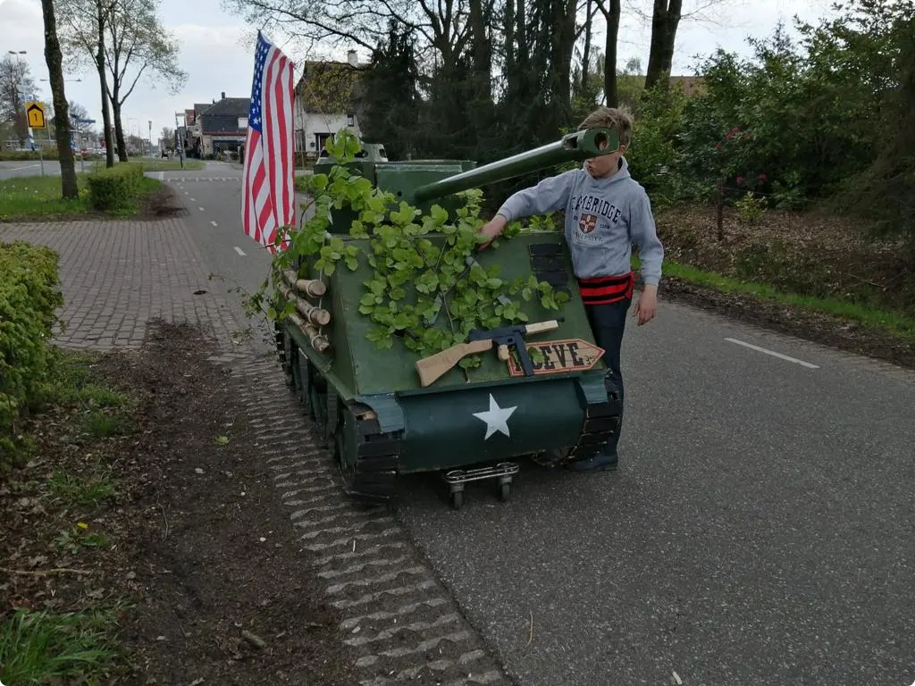 Maar hoe bedenken twee jonge jongens op de basisschool om een eigen tank te bouwen? "Ik zag op YouTube een filmpje van Amerikaanse jongens die een Tiger-tank hadden gebouwd. Dat leek ons ook heel tof." Maar voor Tiemen en Stijn moest en zal het een Amerikaanse Sherman-tank worden. Dit type speelde namelijk een prominente rol in de bevrijding van Nederland. "Een Tiger-tank is een Duitse tank en daar willen we niet mee over straat."
