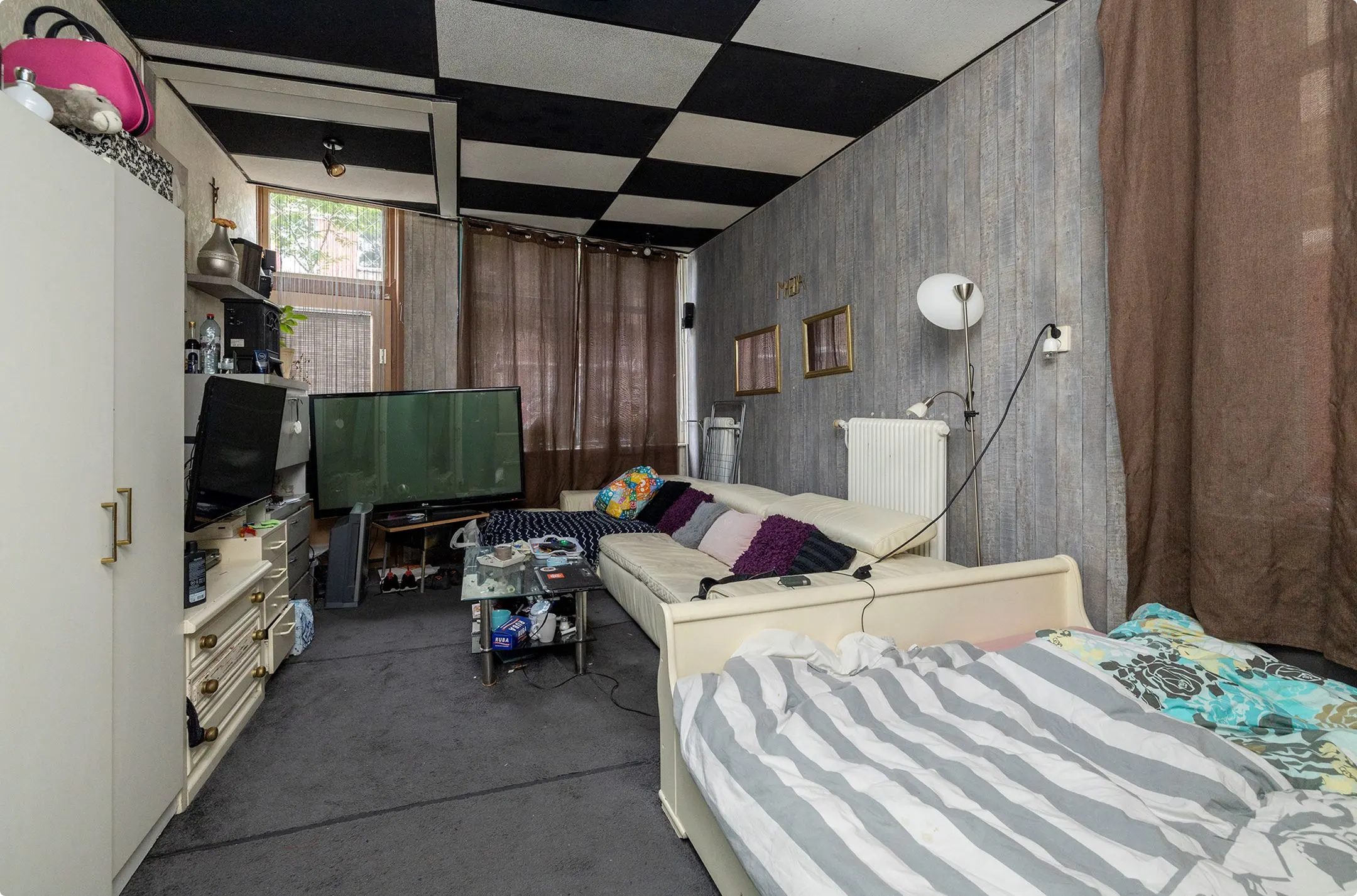 Het gaat om riante hoekwoning van 152 vierkante meter aan de Raam, pal het centrum van Gouda. De koper krijgt vier studio's, met een keukentje, een berging en een gedeelde badkamer tot zijn of haar beschikking. De makelaar beschrijft de woning als een "beleggingsproject" en dat allemaal voor de som van een slordige 479.000 euro.